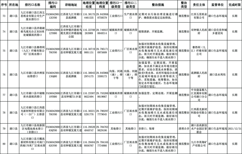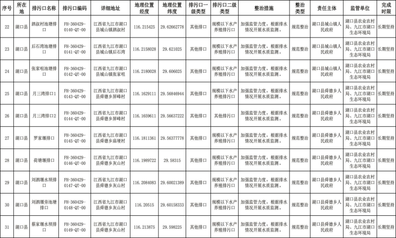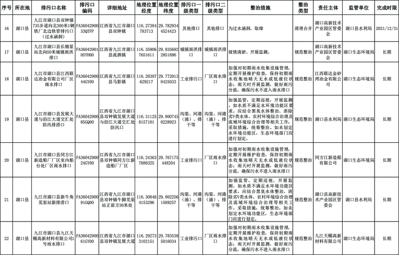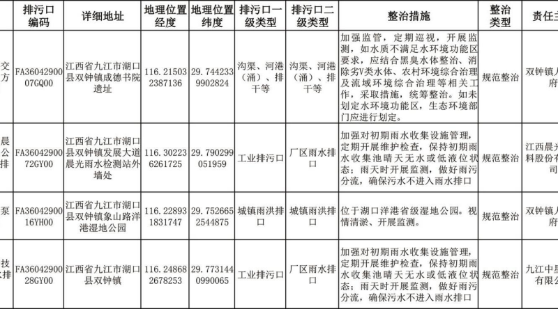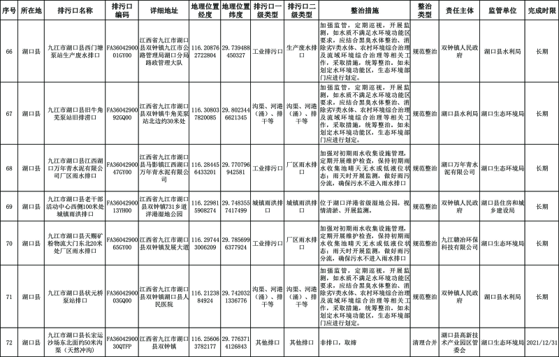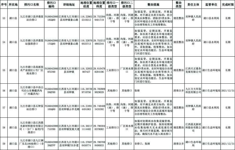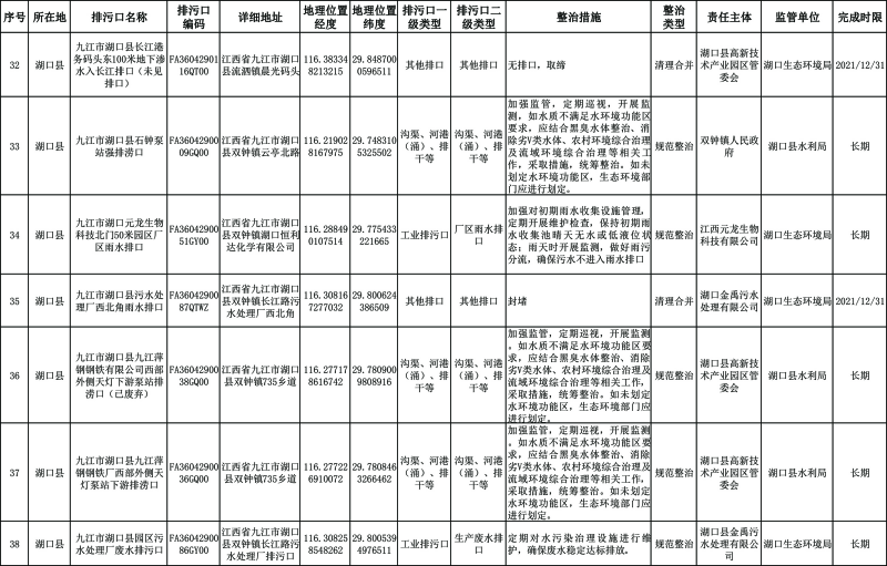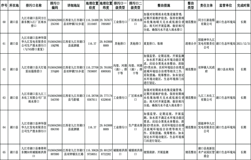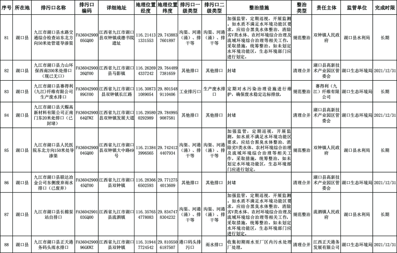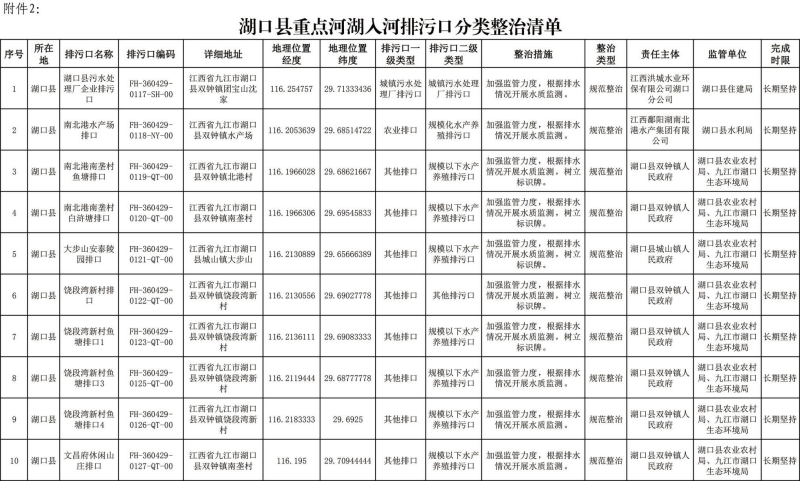 2. 湖口县重点河湖入河排污口分类整治清单。