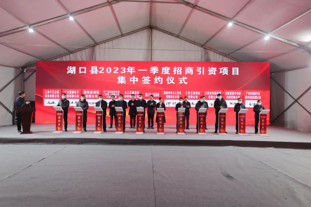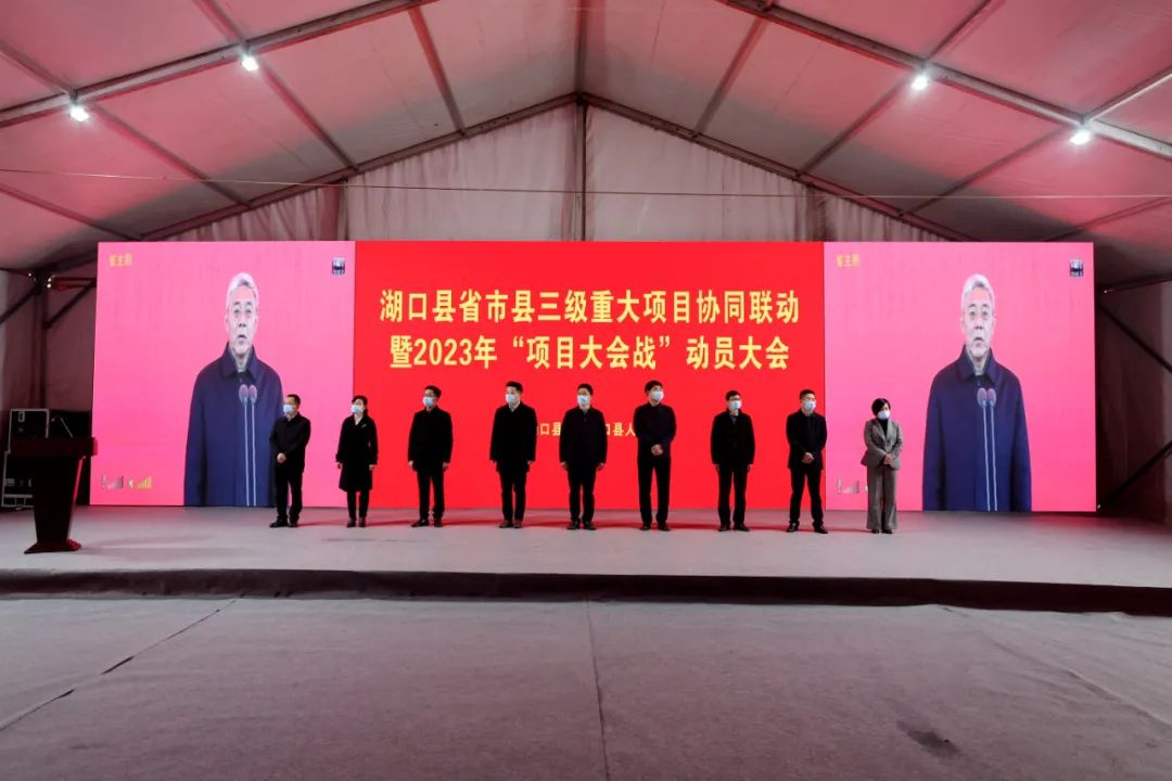 江西省市县三级重大项目协同联动开工暨2023年“项目大会战”动员大会主会场设在南昌市。湖口县在龙山片区江西赫纯新材料科技有限公司项目现场设立分会场。此次湖口县纳入省市县三级联动开工的项目共计76个,总投资154.52亿元,2023年计划投资127.14亿元。