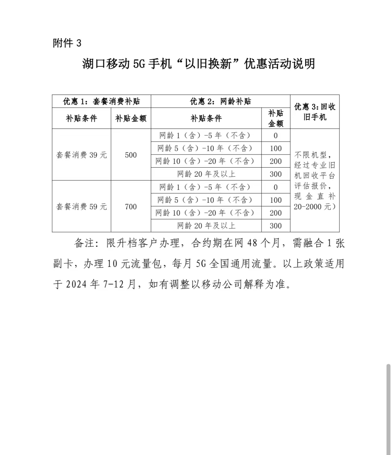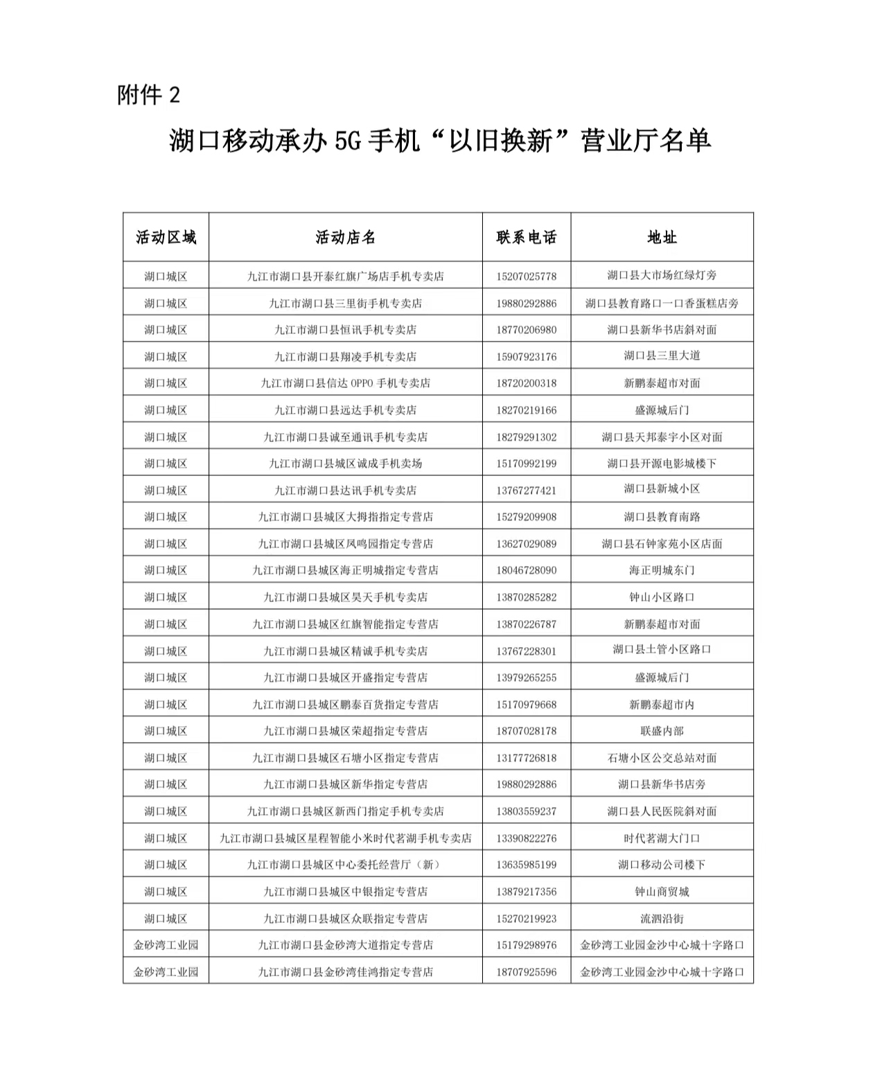 详见附件2:湖口移动承办5G手机“以旧换新”营业厅清单。