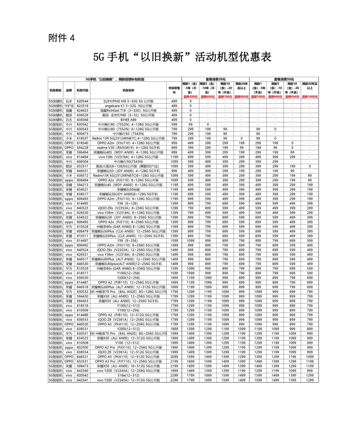 此次补贴资金全部由中国移动湖口县分公司负责,共计补贴400万元,补贴店内华为、荣耀、小米、oppo、vivo等品牌手机5000部。具体补贴细则如下: