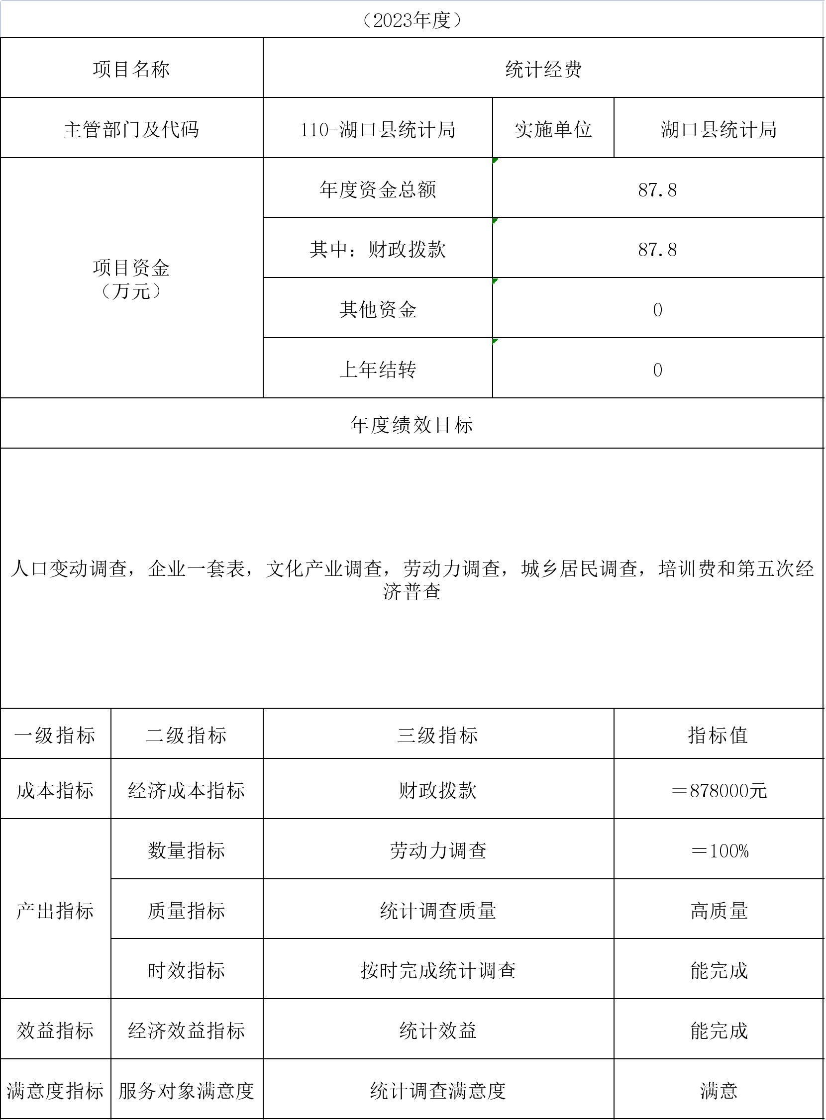 (九)湖口县统计局统计专项项目情况说明(部门本级)
