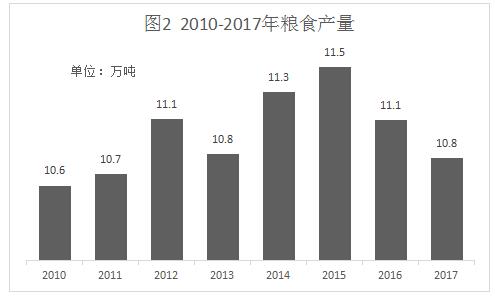 全年粮食总产量10.8万吨,比上年下降2.6%。其中,早稻3.55万吨,下降12.1%;二晚4.23万吨,下降6.4%;一晚和中稻2.05万吨,增长29.7%。全年油料产量2.48万吨,增长6.1%。棉花产量8132吨,增长68.4%。蔬菜产量7.29万吨,增长11.6%。水果产量6567吨,增长0.2%。