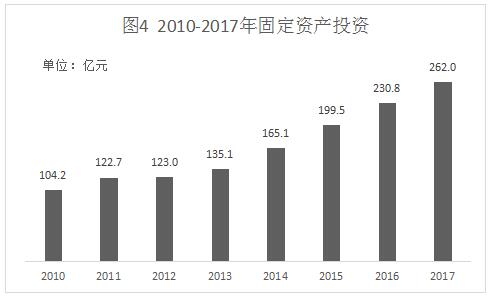 全年固定资产投资完成262.0亿元,增长13.5%。固定资产投资中,亿元以上项目129个,完成投资257.29亿元,其中当年新开工亿元以上工业项目56个,完成投资额101.9亿元。当年竣工亿元以上项目28个,完成投资额58.59亿元,其中工业项目15个,完成投资额41.51亿元。