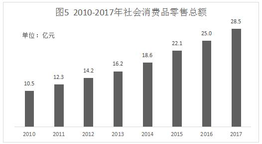 全年社会消费品零售总额285002万元,增长14%。分城乡看,城镇消费品零售总额155876万元,增长15%,乡村消费品零售额129126万元,增长12.8%。分行业看,批发业消费品零售总额41197万元,增长16.2%;零售业零售总额209980万元,增长13.5%;住宿业总额4607万元,增长14.5%;餐饮业零售总额29218万元,增长14.1%。