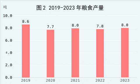 全年粮食总产量8万吨,比上年增长2.5%。其中,早稻1.1万吨,下降6.5%;二晚1.3万吨,下降14.7%;一晚和中稻2.8万吨,下降0.3%。全年油料产量2.5万吨,较上年增长1.9%。棉花产量4572吨,较上年增长7%。蔬菜产量7.4万吨,较上年增长3.0%。水果产量6080吨,较上年增长0.6%。