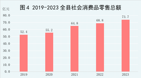 2023年我县旅游接待人数累计为622.4万人次,较2022年增长3.4%,旅游综合收入56.5亿元,较2022年增长12.3%。2023年全年规模以上服务业实现营业收入完成229814万元,增长0.4%。