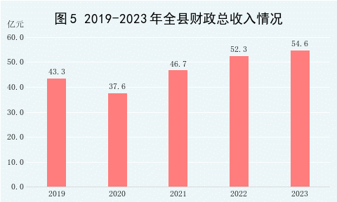 全年财政总收入54.59亿元,比上年增长4%,其中各项税收收入44.12亿元,下降5%。全年一般公共预算收入27.46亿元,增长26%,其中增值税9.13亿元,增长21%;企业所得税3.08亿元,下降28%;个人所得税0.42亿元,下降6%。财政总收入占生产总值的比重为17.3%;税收收入占财政总收入的比重达到80.8%,下降8.1个百分点。全年财政支出48.23亿元,增长23.3%,其中农林水事务支出6.43亿元,增长6.2%,科教文卫体等支出12.32亿元,增长8.4%。