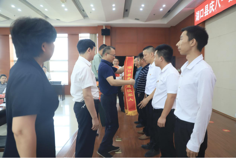 会议表彰了6名2021年度湖口“最美退役军人”。参会代表畅所欲言,分别代表各自群体进行了发言。