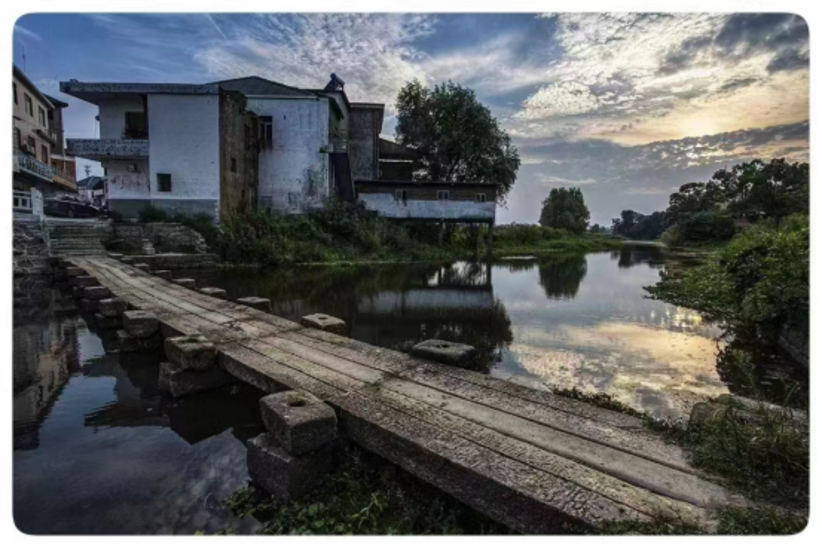3.下石潭桥:下石潭桥为南北走向,全长72米、宽4.1米、占地288.72平方米,共6节,桥墩为船形与八字形相间,各三个,船形为石灰石砌。八字形为花岗石砌,桥面用并列4根花岗石铺成。此桥是过去从江桥通往湖口县城的主要通道。