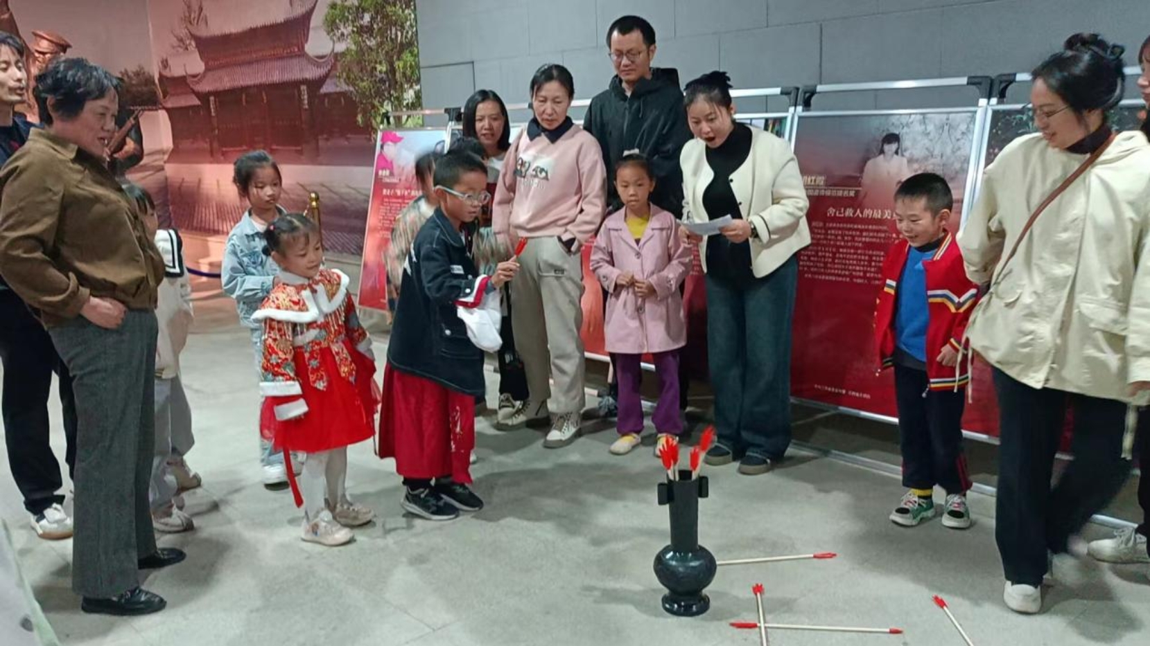 为增加活动的趣味性和互动性,还精心设计了融合传统文化与现代元素的“投壶射礼”游戏。参与者分成两组,每人享有十次投掷机会,共进行三轮投掷,最终以投中总次数评定出一、二、三等奖,并为获奖者献上了精美奖品。活动现场气氛热烈,掌声、欢笑与喝彩交织在一起,形成了欢乐而紧张的比赛氛围。每轮比赛后,参赛者们还会互相探讨投掷技巧,分享心得,整个场地充满了浓厚的学习与交流氛围。