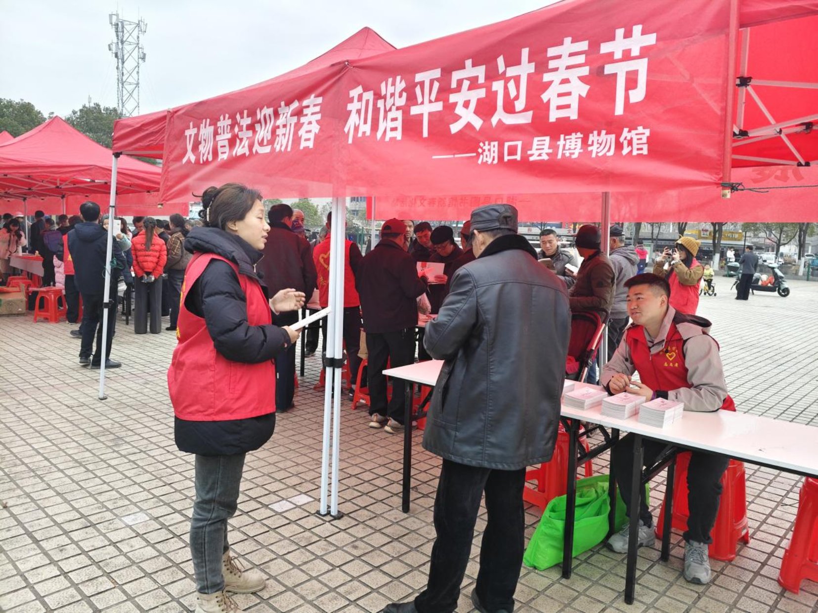 1月22日由湖口县文广旅局主办,县文化馆、县博物馆、县图书馆、县美术馆共同承办的“贺新春送万福进万家”文化惠民活动在鄱阳湖大市场开展。