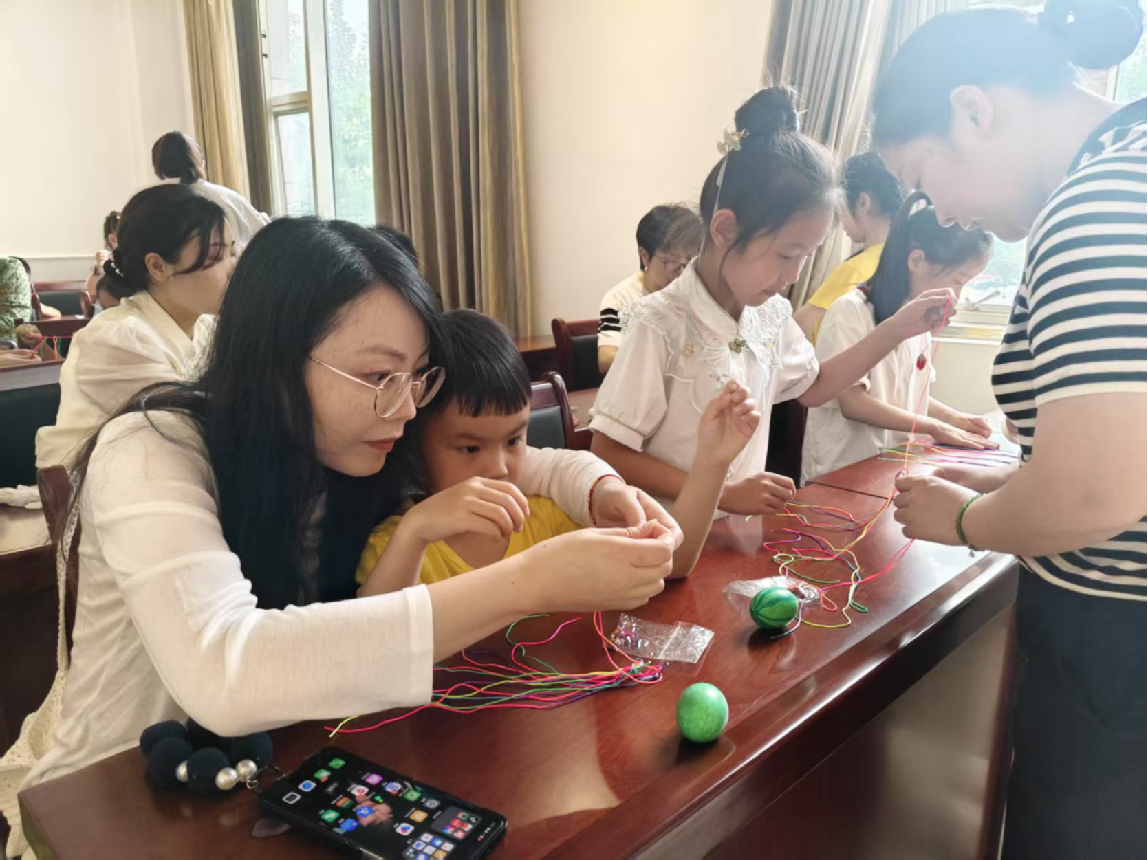 斗蛋袋编织环节,五彩丝线翻飞如蝶,缠绕出端午特有的灵韵。在工作人员的悉心指导下,参与者屏息凝神,将丝线穿梭交织,从基础的穿引打结,到复杂的纹样编织,指尖流转间,承载着古老智慧的传统技艺焕发新生。当精巧的斗蛋袋在手中成型,那份从指尖蔓延至心间的成就感,让传统文化的温度真实可触。