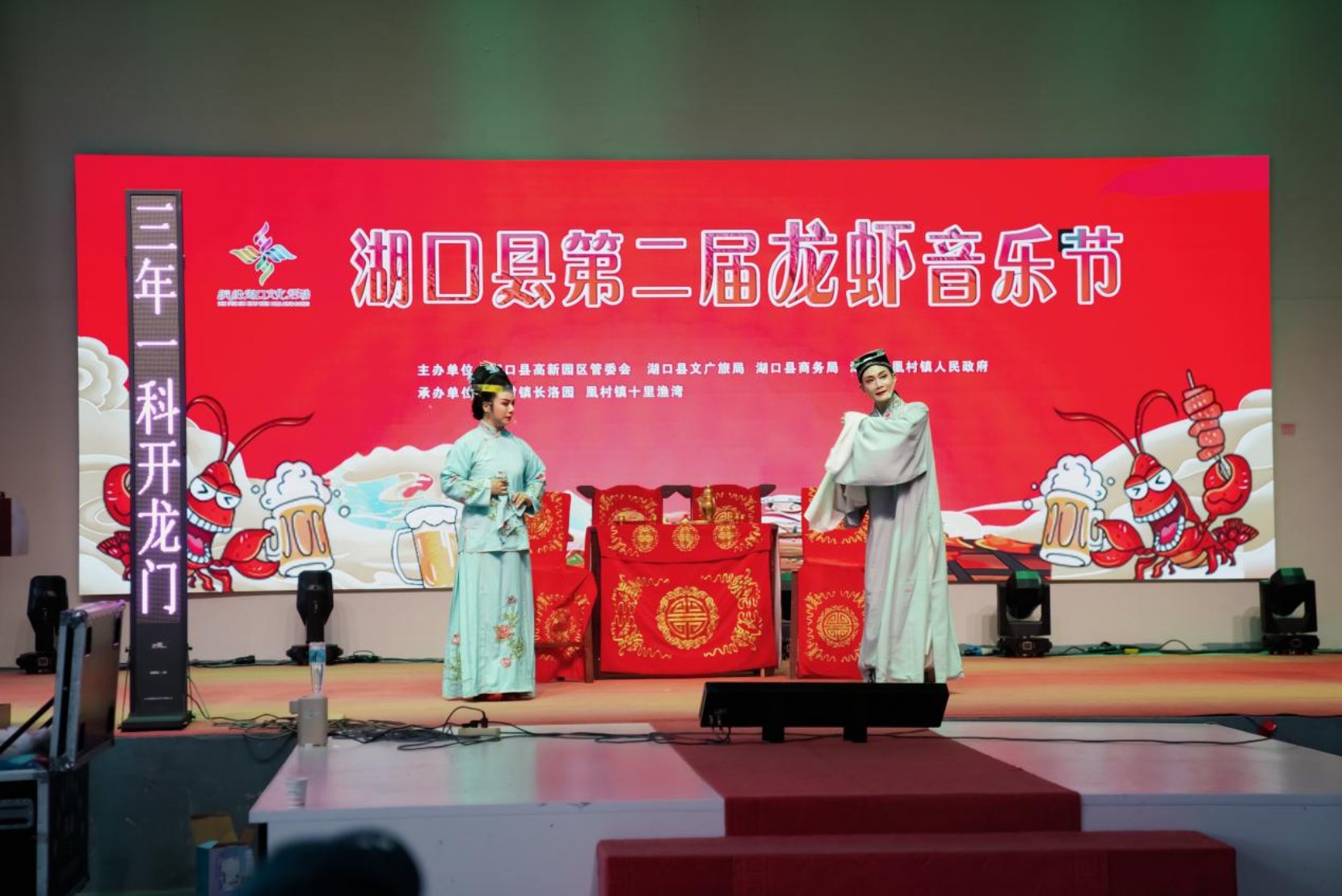 在端午佳节馥郁芬芳、凰村镇龙虾节热闹非凡之际,为弘扬优秀传统文化、助力乡村特色产业蓬勃发展,湖口县黄梅戏剧团精心筹备并圆满举办了“端午梨园会,龙虾醉凰村”送戏进凰村镇第二届龙虾音乐节活动。本次活动由湖口县委宣传部、县文化广电旅游局主办,湖口县黄梅戏剧团承办。巧妙融合传统戏曲艺术与地方特色产业,为当地群众和八方游客呈上了一场别开生面、韵味悠长的文化盛宴。