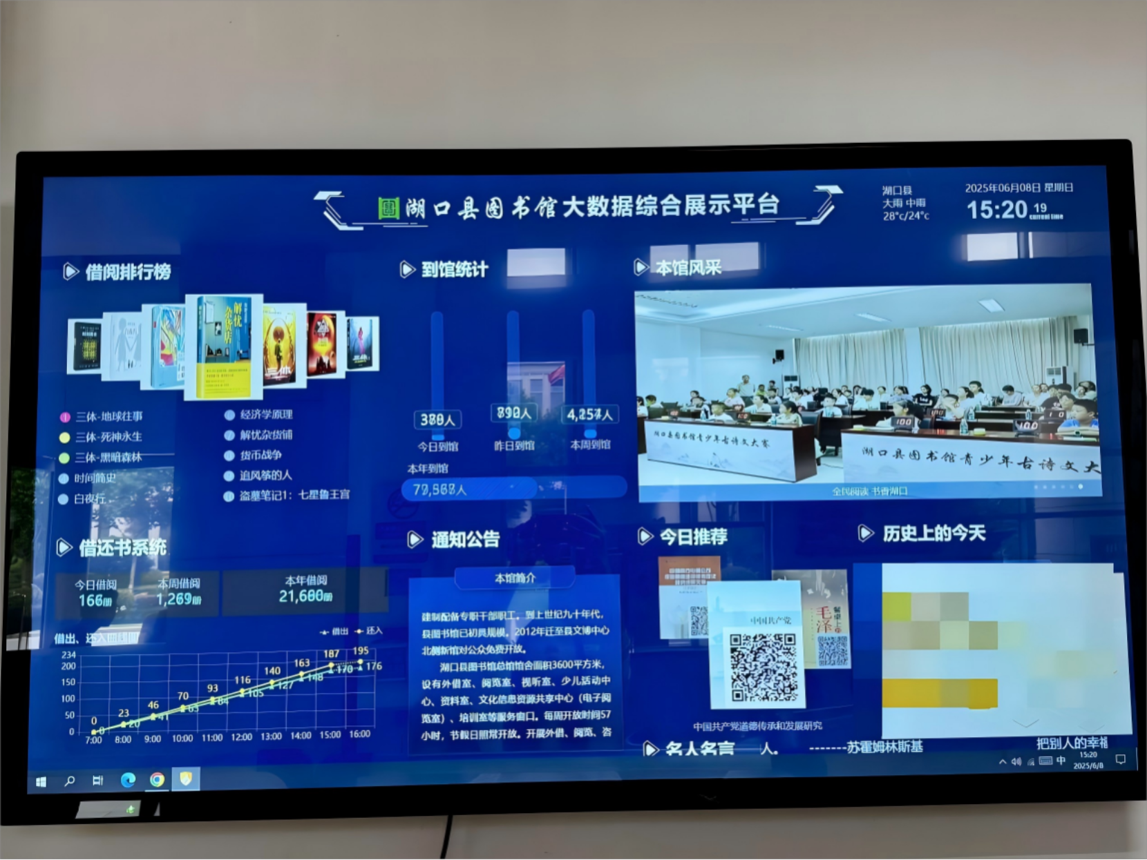 为进一步推进“书香湖口”建设,提升公共文化服务效能,湖口县图书馆于近日完成一楼少儿图书外借室和二楼图书外借室的智慧化改造,正式增设电子自助借还机以及大数据综合展示平台。这一系列举措标志着图书馆从传统服务模式向“智慧+数据”双轮驱动的转型迈出关键一步,为读者提供更智能、更高效、更便捷的服务体验。