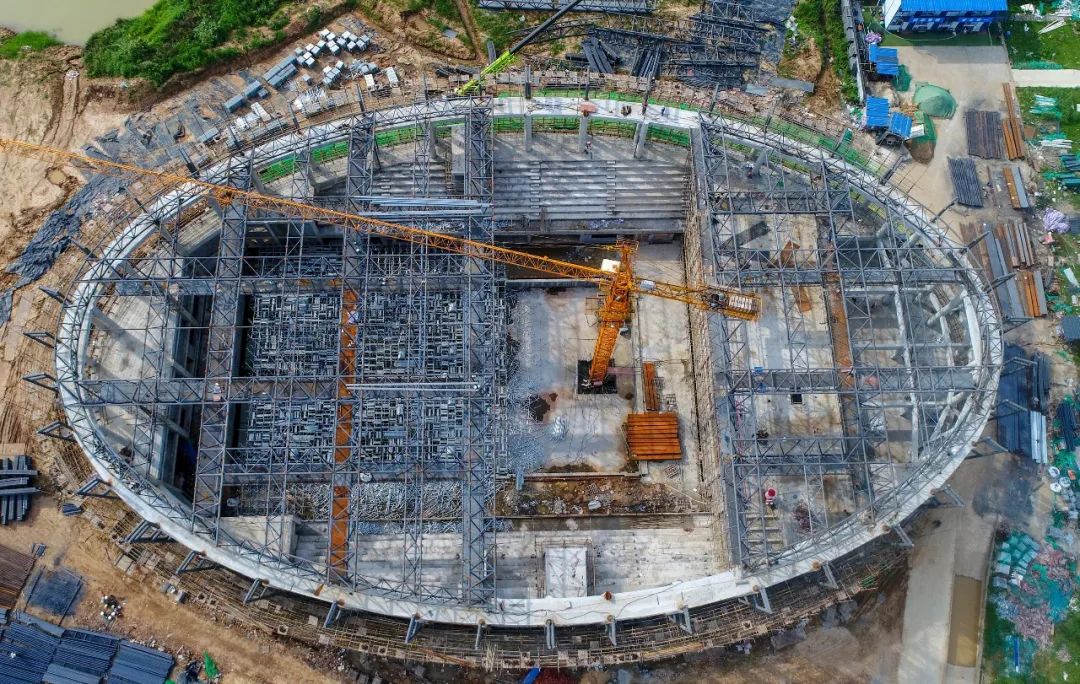 烈日炎炎,热浪滚滚。7月6日,在湖口县游泳馆项目建设工地,施工人员正在紧张作业。连日来持续高温天气,在项目建设施工现场,广大建设者们科学应对,合理安排,战高温、斗酷暑,坚守在岗位一线,全力加快项目建设,确保重点项目攻势力度不减,推进速度不变。
