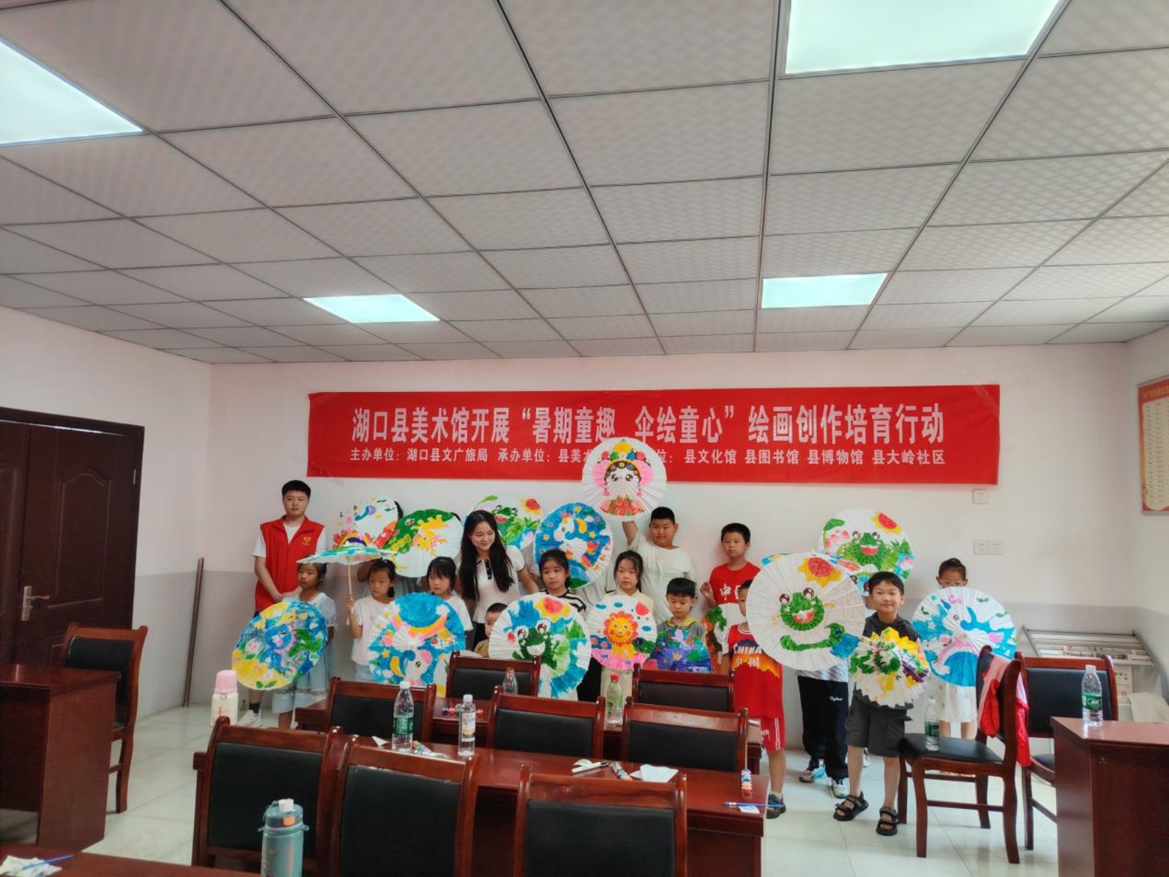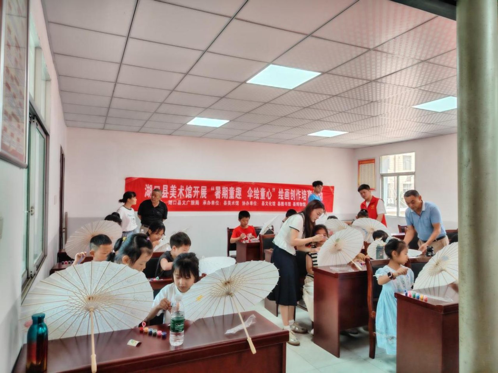 为丰富青少年暑期文化生活,激发少儿艺术创造力,7月10日,湖口县美术馆举办“暑期童趣 伞绘童心”主题绘画创作培育行动,走进大岭社区,吸引30余名小学生参与。孩子们在老师的指导下,以油纸伞为画布,挥洒童真创意,体验传统艺术与现代绘画融合的乐趣。