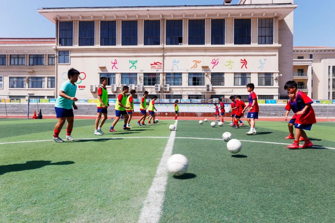 绿茵场上跃动的身影划出青春弧线,此起彼伏的呐喊声激荡校园上空。在张青小学的足球场上,校足球队队员正进行5对5对抗赛。该校副校长郑立朋介绍,学校于2018年被教育部认定为全国青少年校园足球特色学校,现有D级、E级足球教练员各一名,组建男子、女子足球队,全校每班每周开设两节足球课,并利用早训和兴趣社团开展足球训练活动。学校每年举办班级足球联赛,承办片区校园足球联赛,并积极参加市、县级校园足球联赛。