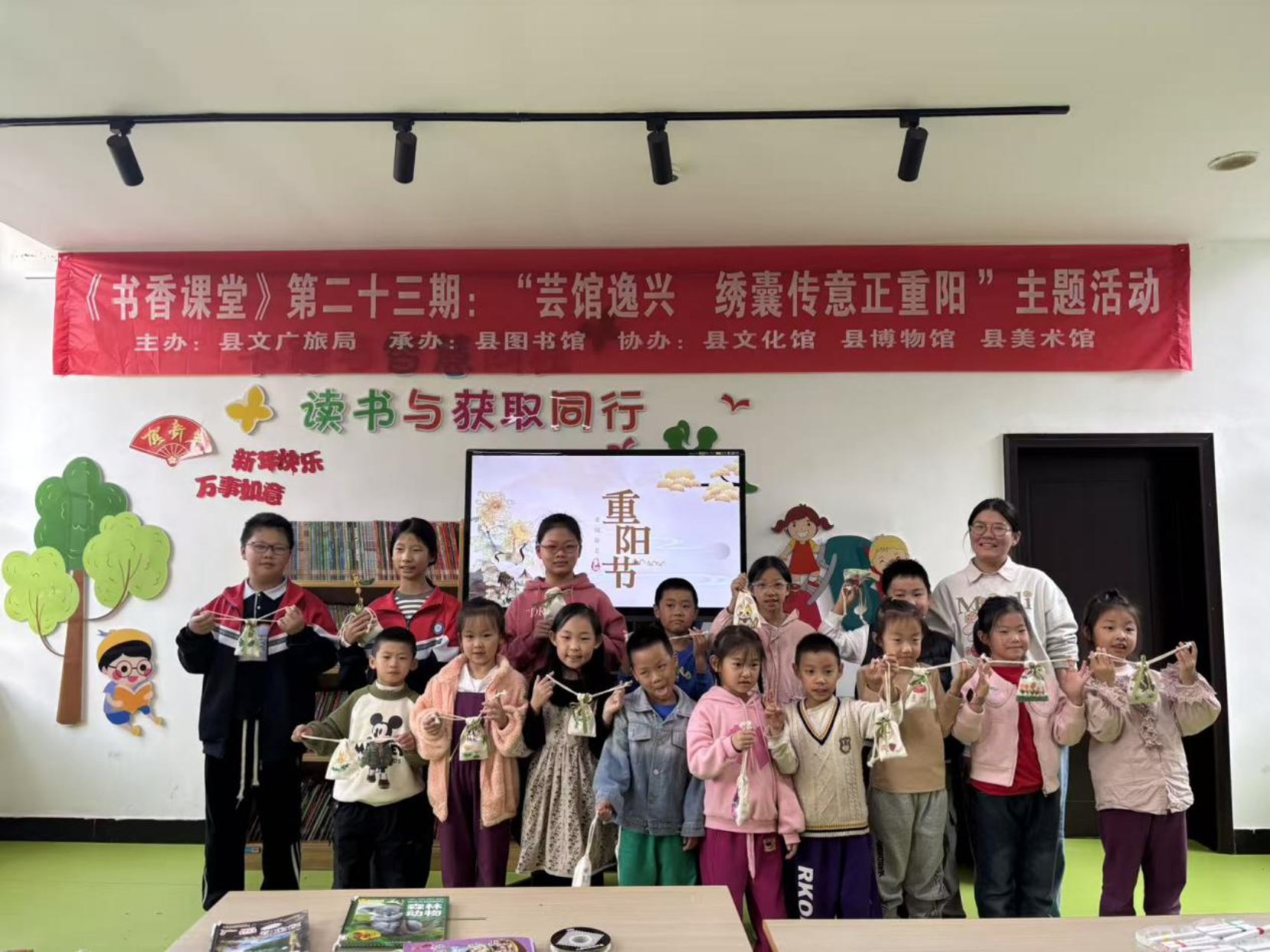 金风送爽,岁岁重阳。2025年10月25日下午,湖口县图书馆内弥漫着浓郁的书香和药香,一场别开生面,以“芸馆逸兴,绣囊穿意正重阳”为主题的书香课堂活动在此温馨启幕。众多小读者们满怀期待,踏入这知识与传统交织的奇妙殿堂,共度了一段意义非凡的时光。