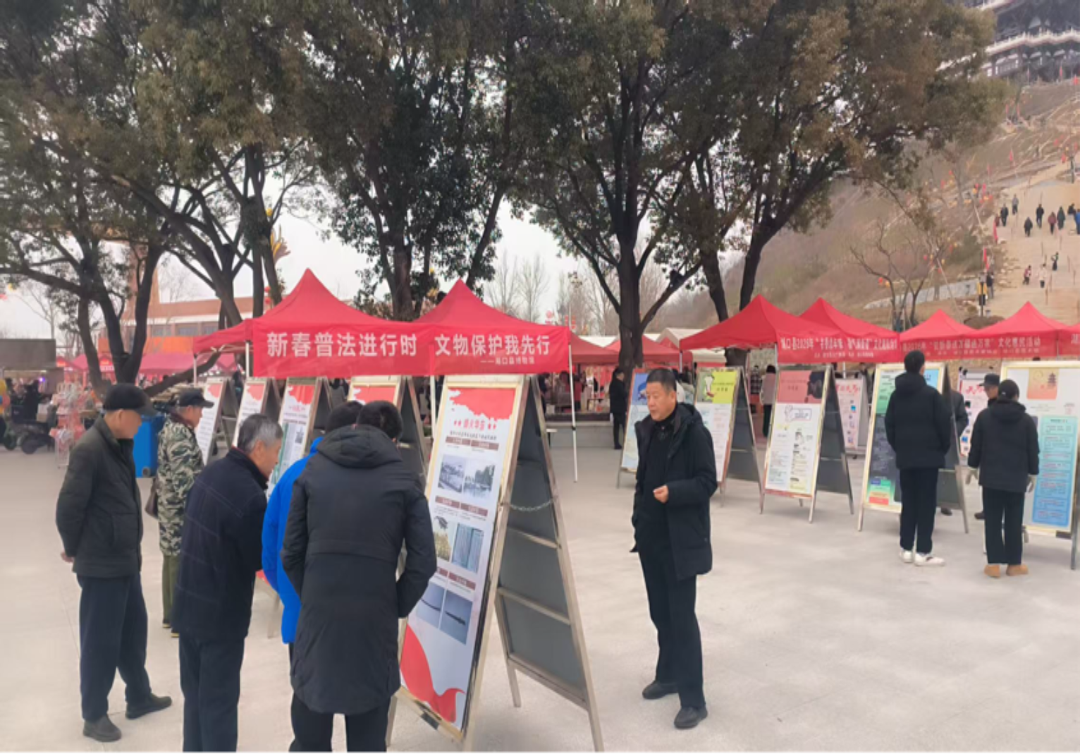 活动现场,红色的宣传帐篷一字排开,“新春普法进行时 文物保护我先行”的横幅格外醒目。博物馆工作人员通过设置普法展板、发放宣传手册、现场答疑等形式,向过往群众详细解读新修订《中华人民共和国文物保护法》的重点内容,包括文物保护范围和建设控制地带内建设审批规定、违法行为的惩处力度以及社会力量参与文物保护的激励措施等。