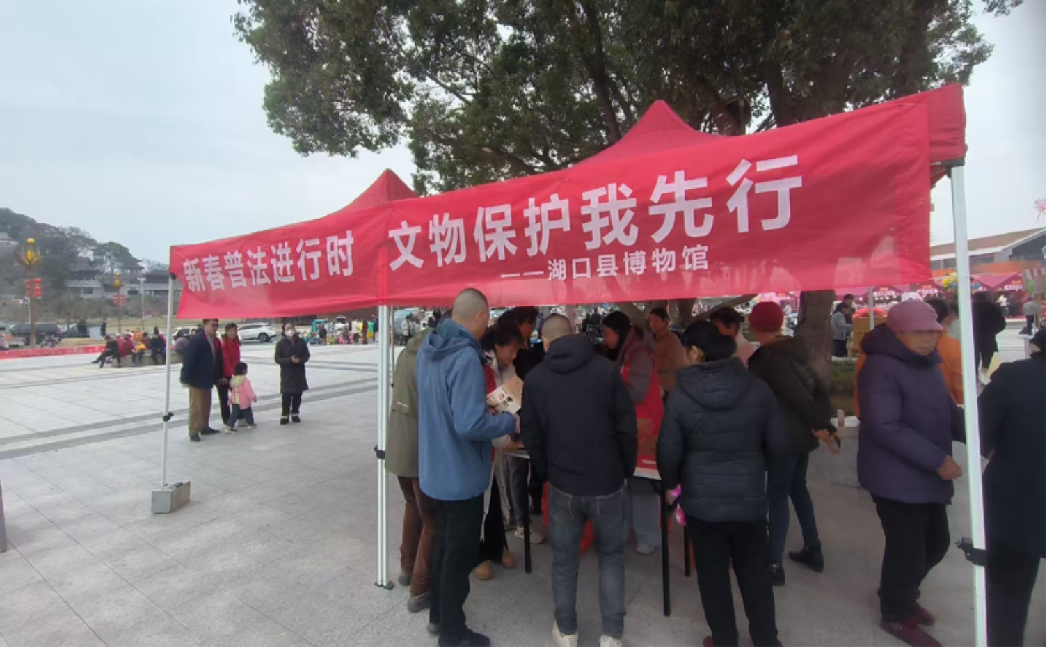 新春将至,年味渐浓。为增强群众文物保护法治意识,营造全社会共同守护文化遗产的良好氛围,2026年2月4日下午,湖口县博物馆在石钟楼下方空地举办了“新春普法进行时 文物保护我先行”主题宣传活动,将新修订的《中华人民共和国文物保护法》送到群众身边。