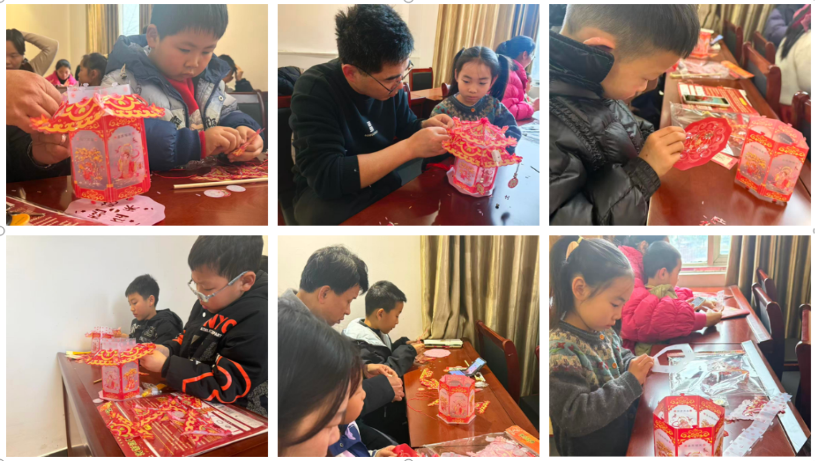 活动室的花灯制作区里,暖意融融,亲子家庭围坐在桌前,一场别开生面的“花灯拼装赛”正热闹上演。不同于传统纸质花灯,本次采用拼装式套件,红金相间的塑料部件、镂空框架、流苏等整齐摆放,无需彩绘,全靠巧思与协作完成组装。