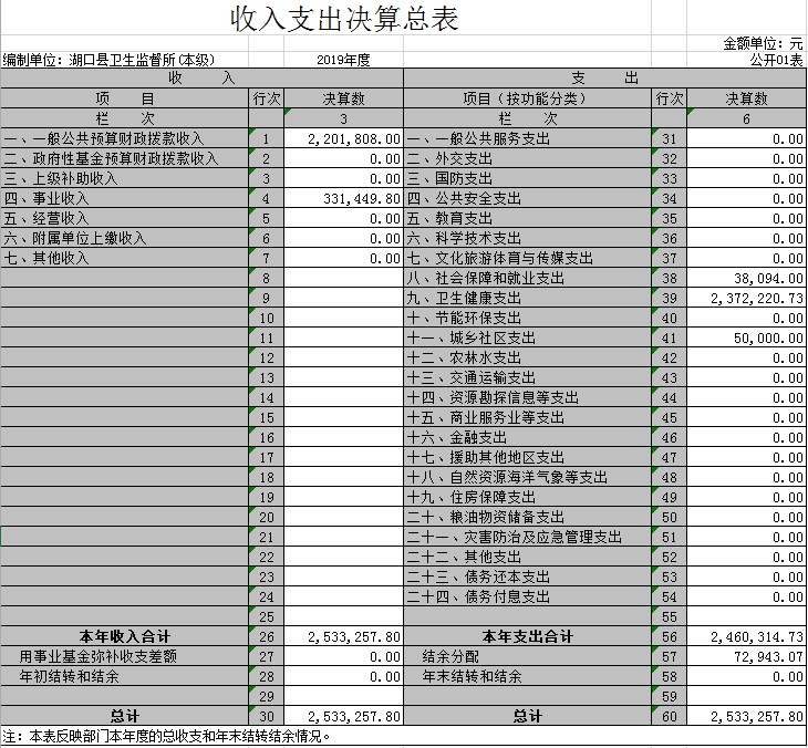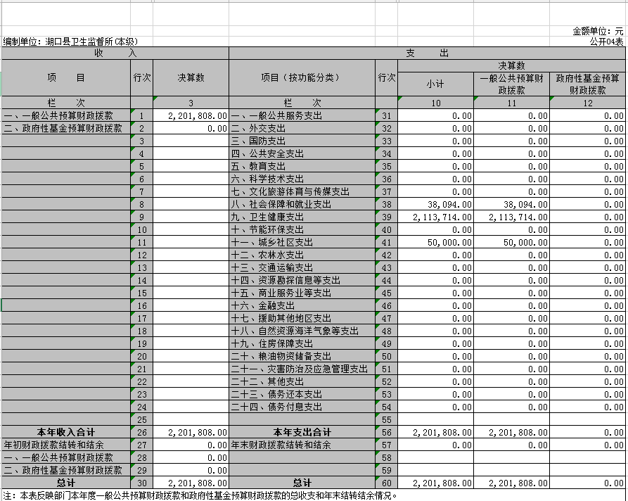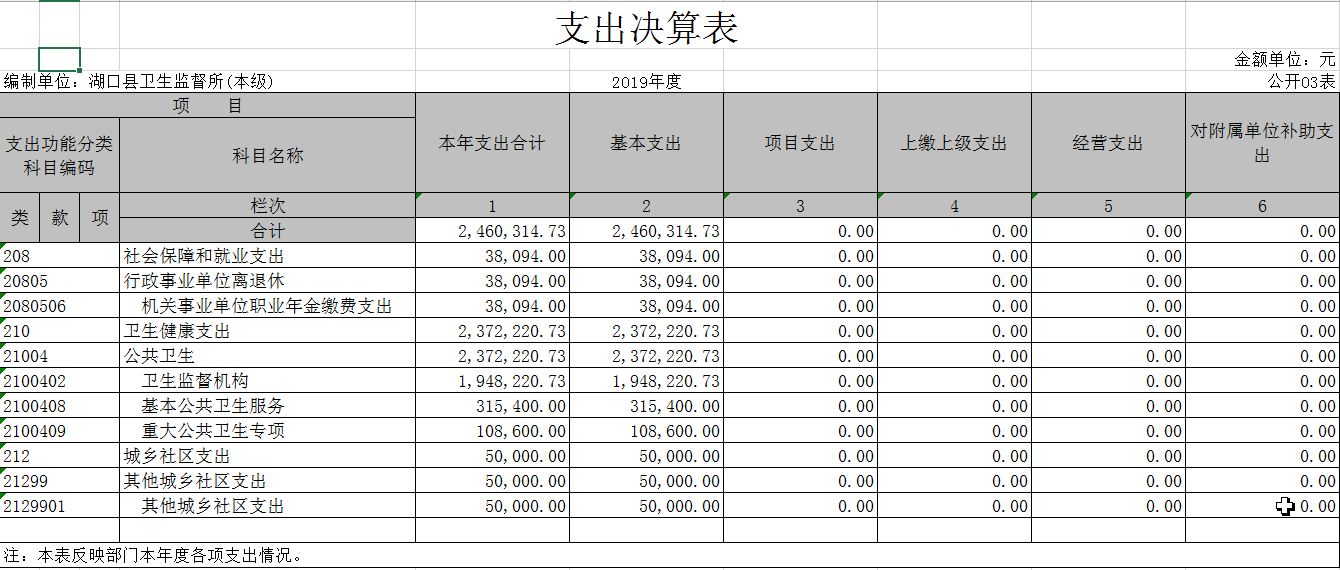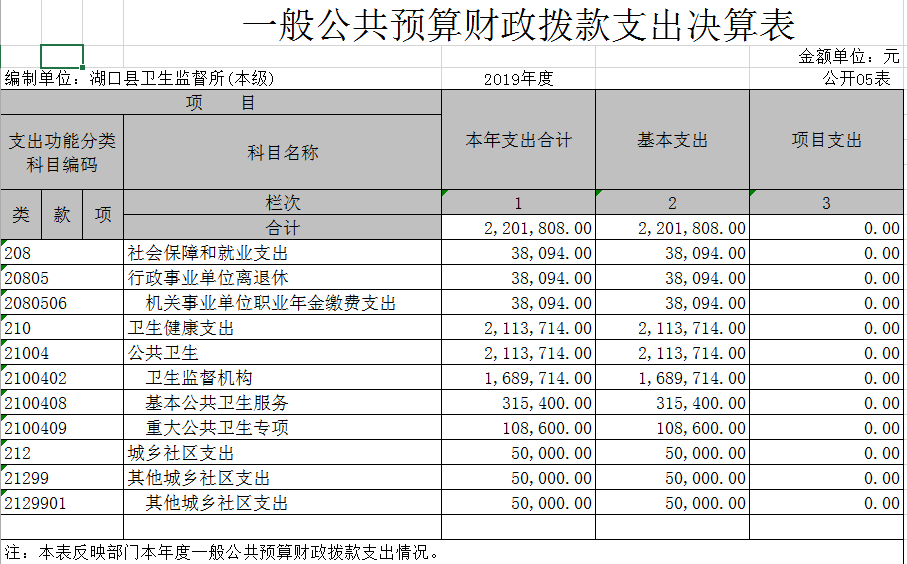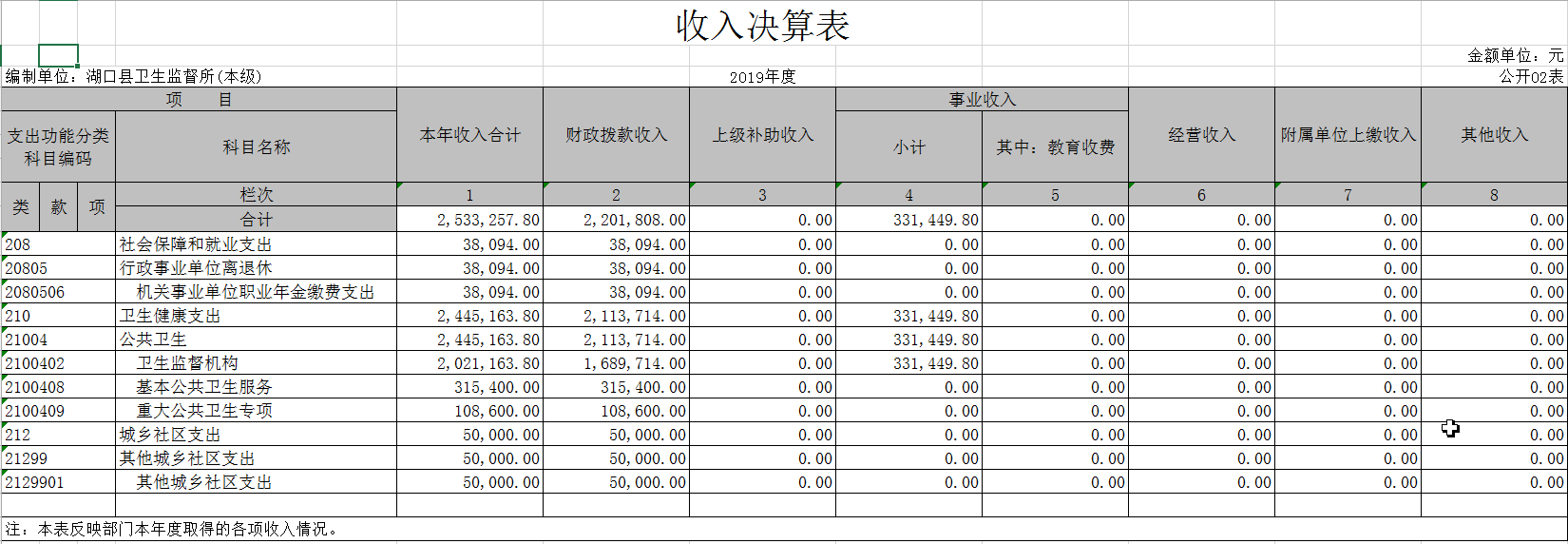 湖口县卫生计生综合监督执法局部门2019年度部门决算