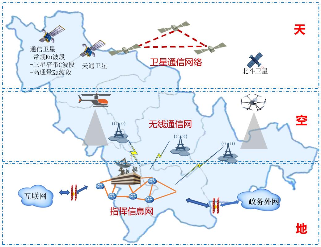 传输层,采用SDN、4G/5G、IPv6、PDT、卫星通信等技术,建立全域覆盖、无缝连接和全程贯通的基础通信网络环境,为应急管理各项业务实现提供网络支撑;