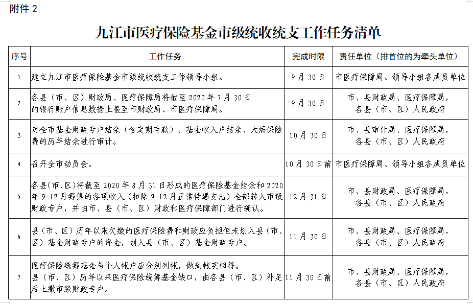 2.九江市医疗保险基金市级统收统支工作任务清单