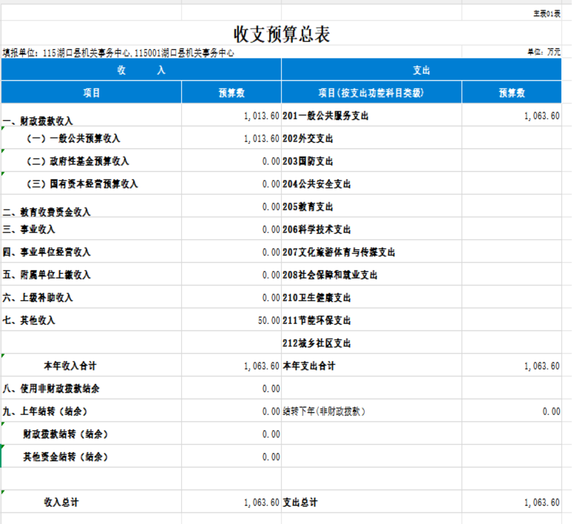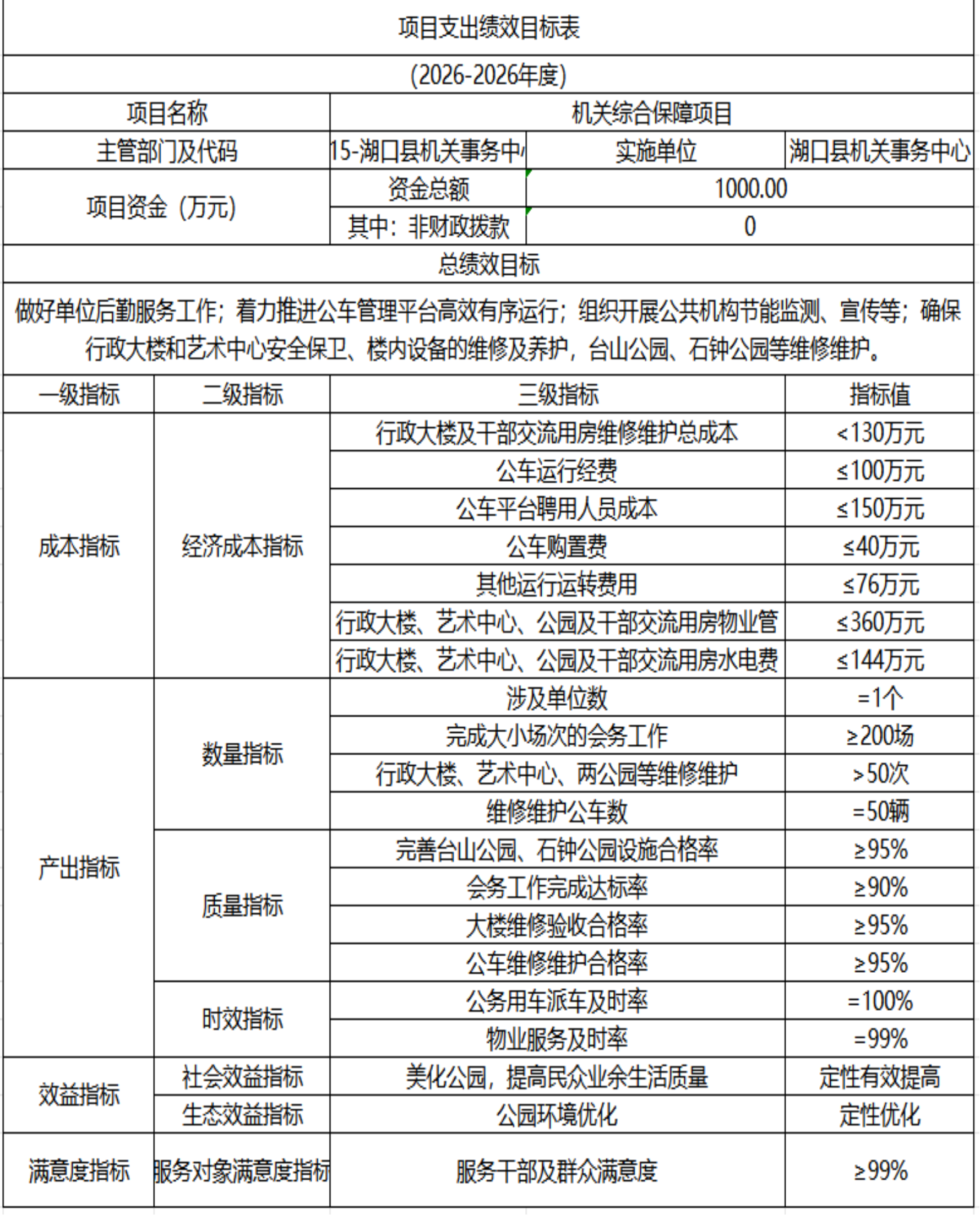 2026年湖口县机关事务中心支出预算总额为1063.6万元,较上年预算安排减少1.6万元;其中: