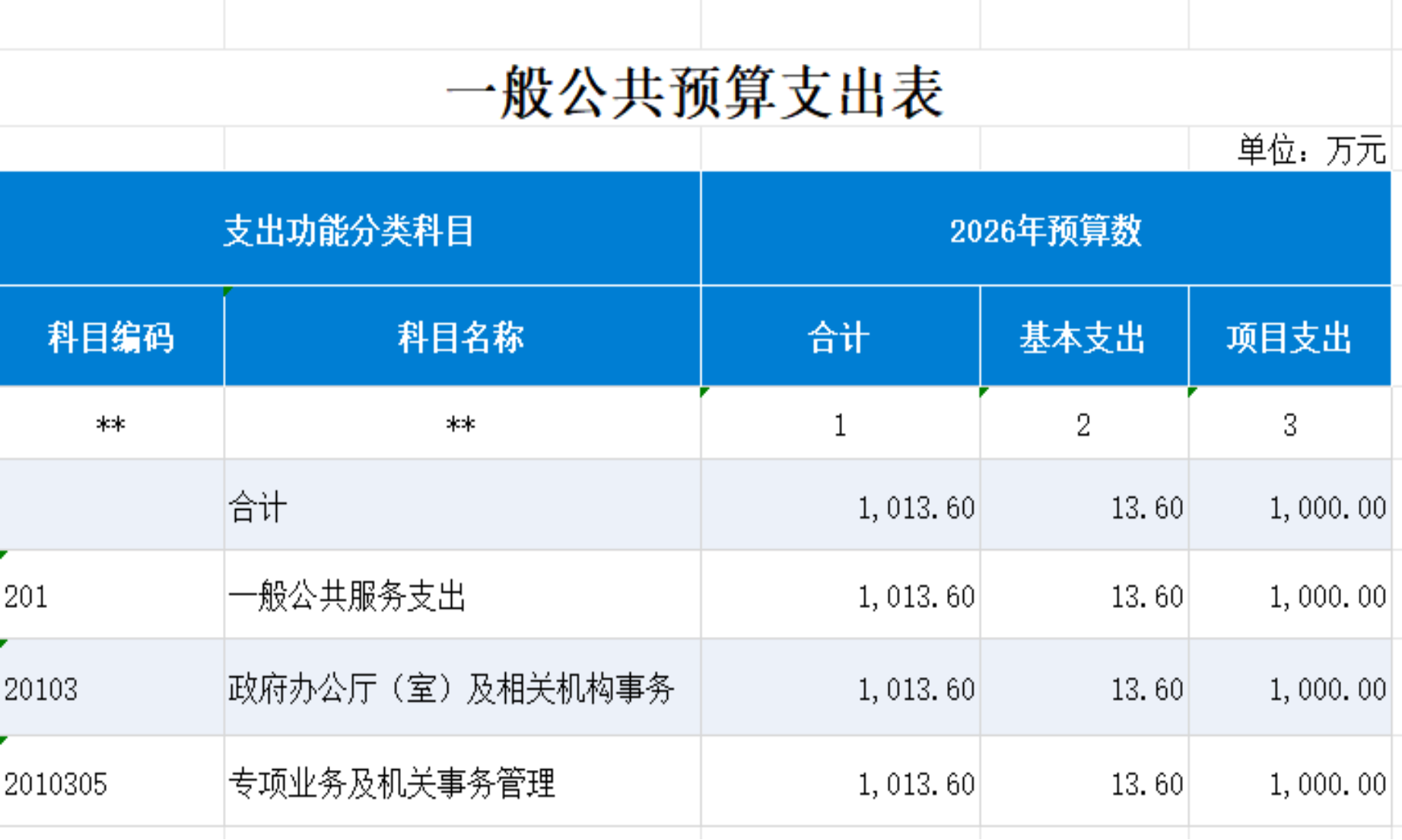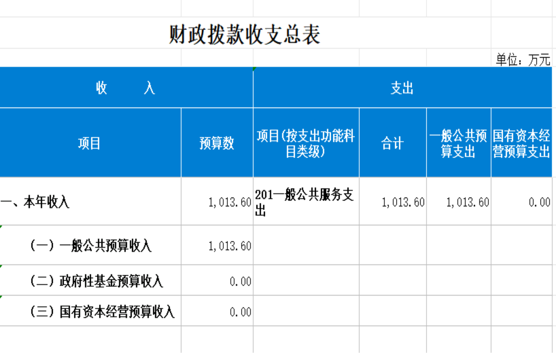 按支出功能科目划分:一般公共服务支出1013.6万元,教育支出0万元,社会保障和就业支出0万元,卫生健康支出0万元,住房保障支出0万元。
