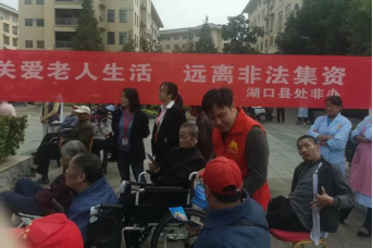湖口处非办在石钟情养老城为老人开展处非宣传活动,通过发放宣传折页、现场宣讲等方式向老年群体宣传非法集资的有关政策、典型案例、法律法规、及防范要领,推动防范非法集资工作走深走实。