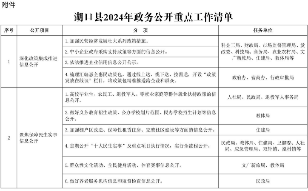 附件:湖口县2024年政务公开重点工作清单