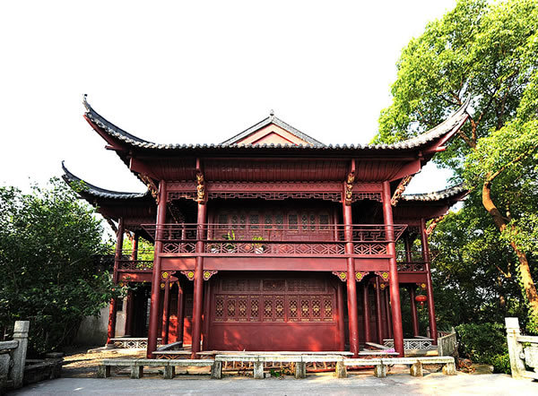 建于石钟山最高处,也称“六十本梅花寄舫”、“卧雪吟香之馆”。俯瞰梅花厅,形状像一朵绽开的梅花。周围遍栽梅树,腊雪飘飘之时,白雪红梅,映衬高楼,景色十分壮观。彭玉麟联云:“长啸一声秋月白,寄怀千古远峰青。”并作《六十本梅花寄舫》七律一首。诗中有云:“流水小桥溶夜月,浮栏曲榭绕梅花。”彭玉麟还在这里卧吟梅花七绝一百首。