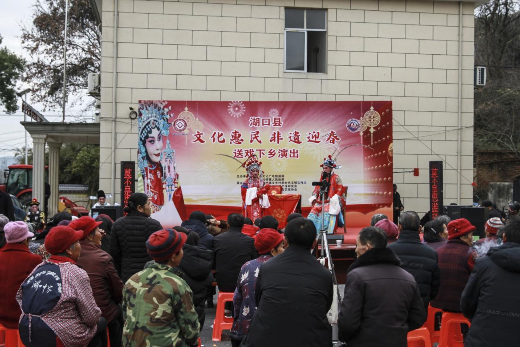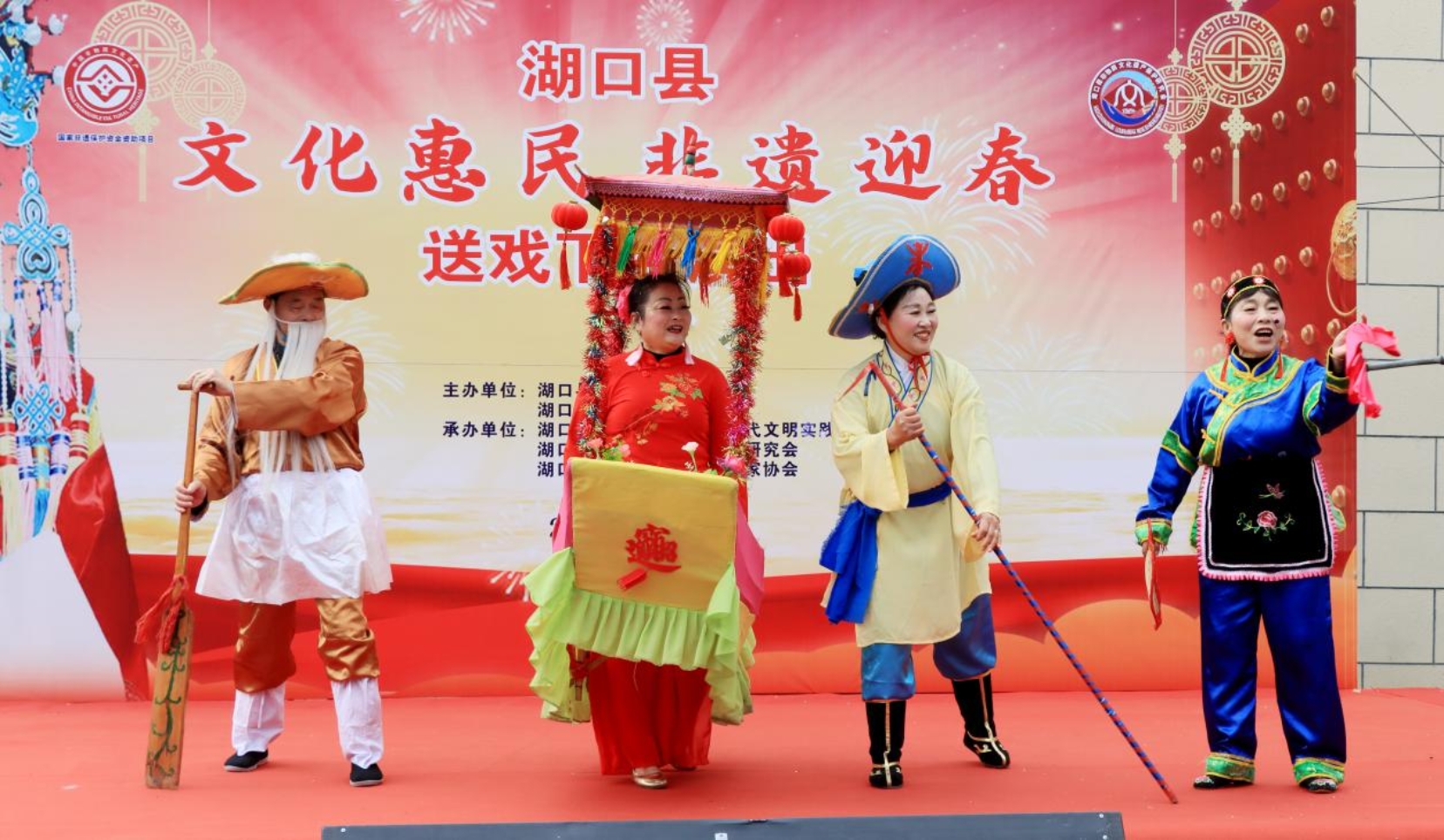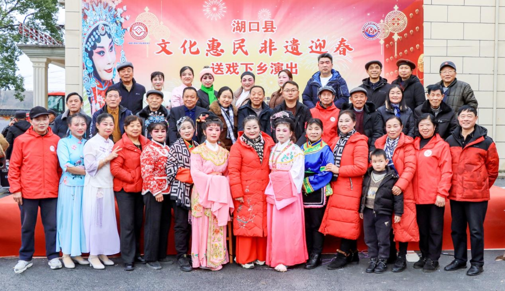春节前夕,为营造喜庆热闹的春节氛围,丰富人民群众的业余文化生活,让非遗成果惠及全县人民群众。1月14日,由湖口县文化广电旅游局、均桥镇人民政府主办,文光村新时代文明实践站、县非物质文化遗产保护研究会、县民间戏剧曲艺文艺家协会承办的“文化惠民、非遗迎春”送戏下乡演出活动在均桥镇文光村开幕。