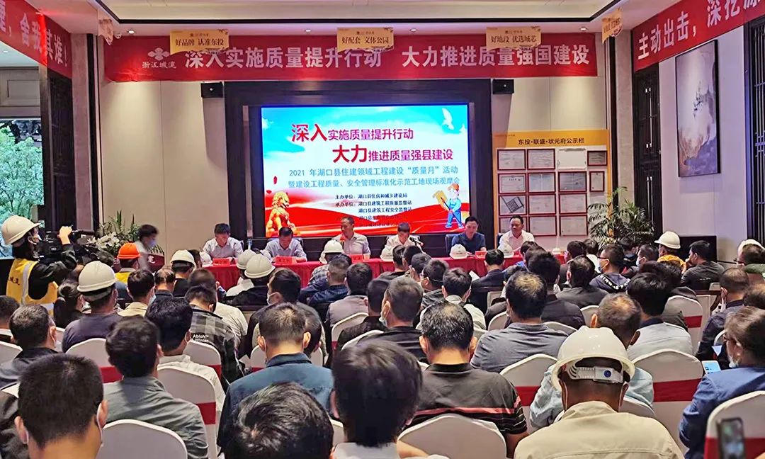 10月10日,2021年湖口县住建领域“质量月”活动暨建设工程质量、安全管理标准化示范工地现场观摩会在东投联盛·状元府项目举行。县住建局领导夏敏谦、县住建局建管股长夏之秋、质量监督站领导周文平、安全监督站领导杨忠辉等一行及县辖在建项目及部分企业代表参加了本次观摩会议。