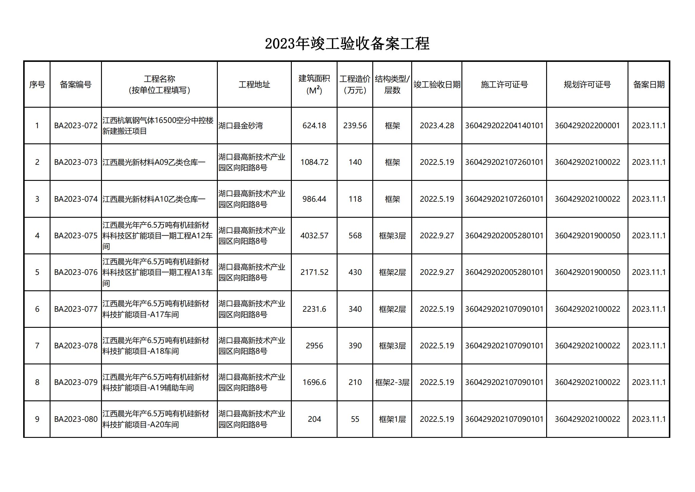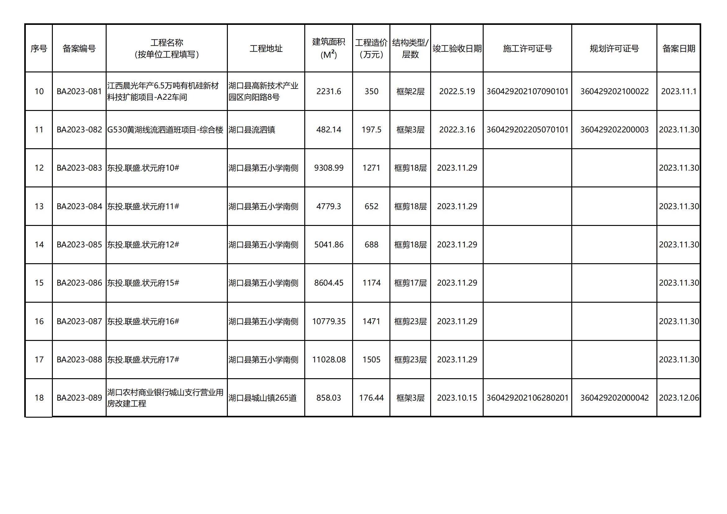 湖口县住房和城乡建设局2023年竣工验收备案工程情况(2023年10-12月)