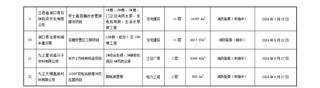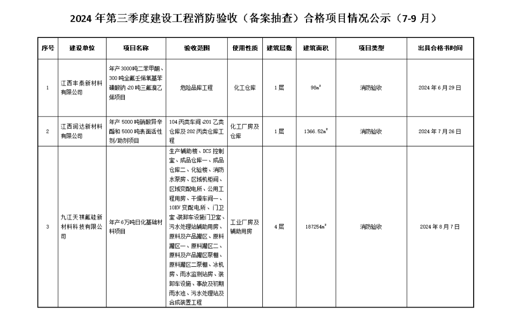 2024年第三季度建设工程消防验收(备案抽查)合格项目情况公示(7-9月)