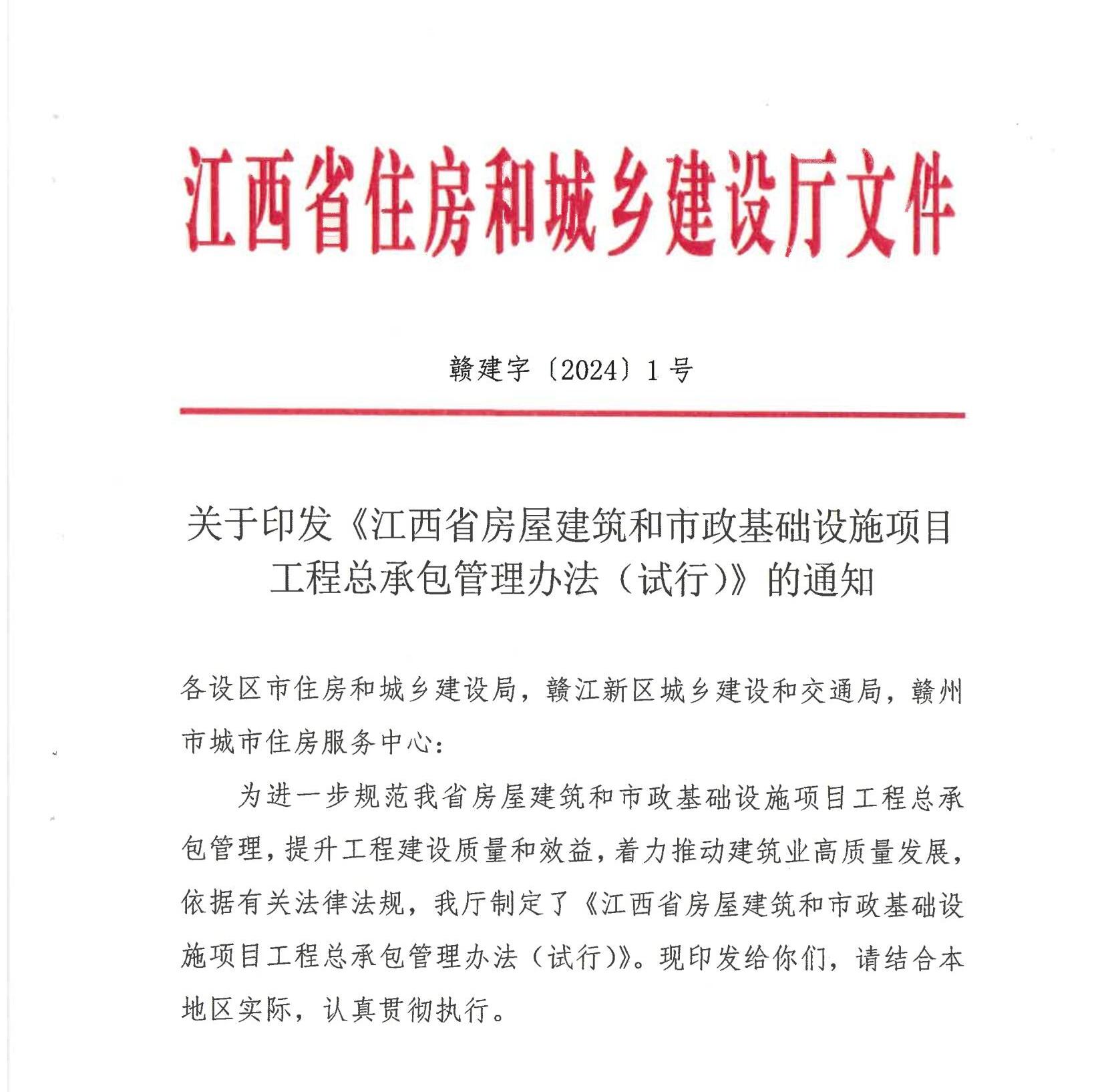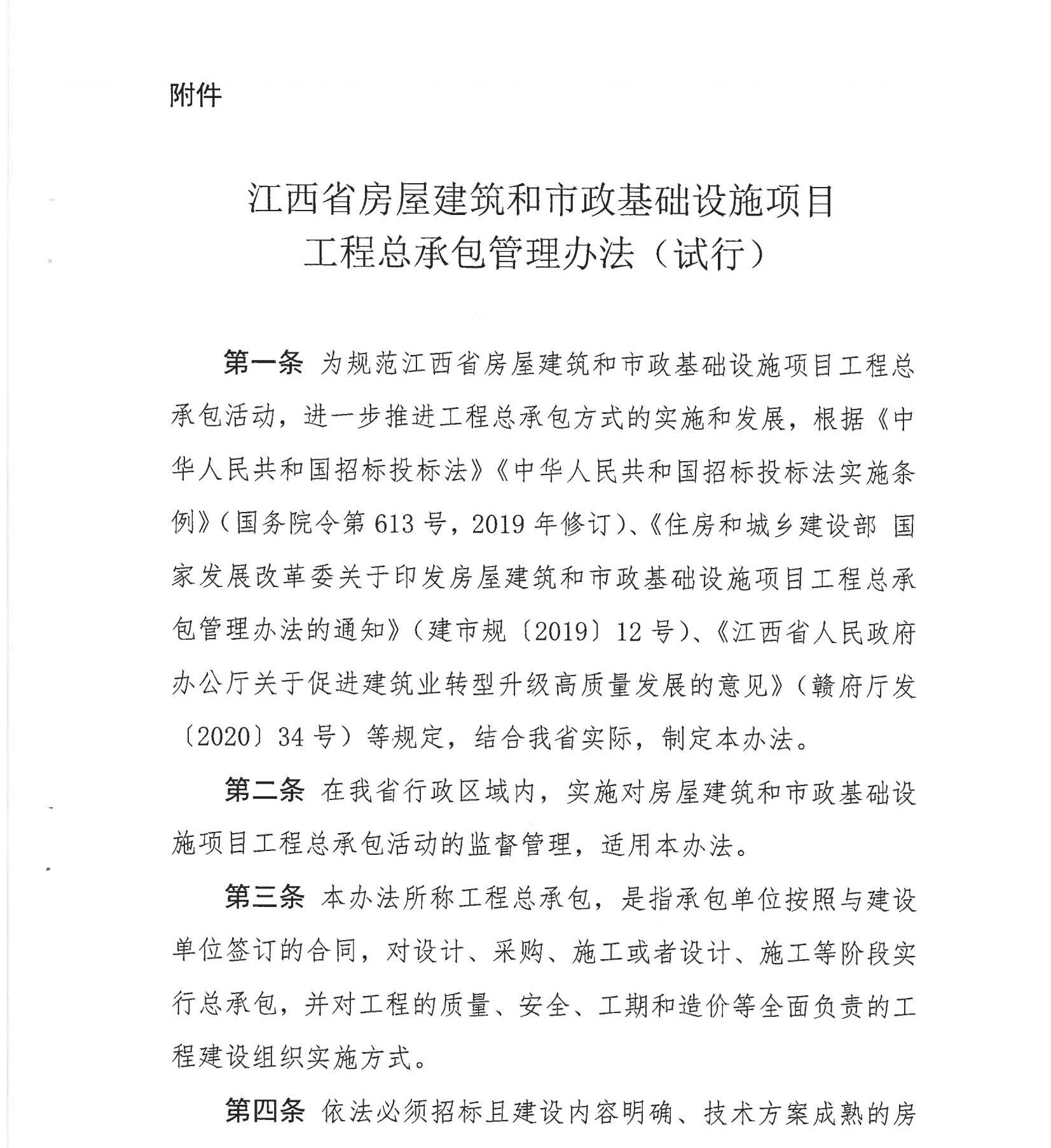 关于印发《江西省房屋建筑和市政基础设施项目工程总承包管理办法(试行)》的通知