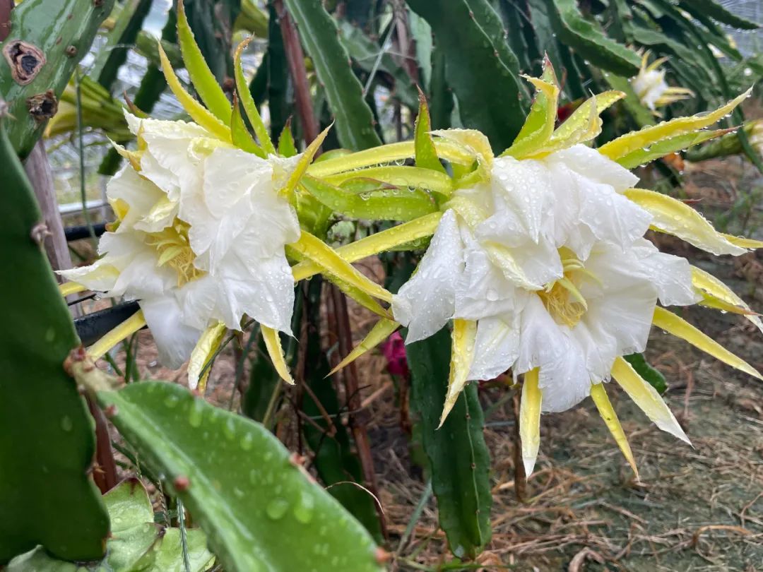 “火龙果一般在6月至12月开花,每年可以开花8次,花谢以后30天左右就可以采果上市。火龙果从7月中旬上市之后,一年可以成熟8次,直到过年都有供应。火龙果花可食用,花果期长,从6月开花开始到12月底结束,历时6个月。花果不仅能上市销售,还适合观光采摘,促进了农旅融合和乡村旅游产业发展。”张青乡荷塘村党支部书记、主任李爱华介绍,“经过多年的积极探索种植技术和模式,改良新品种,强化技术指导服务等科技助力,我们的火龙果种植技术已经成熟,火龙果的果品、口感、糖分等达到上佳。”