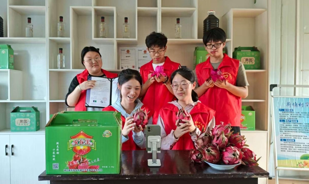在张青乡荷塘村火龙果产业基地,一场别开生面的“助农直播”正在上演。面对镜头,大学生主播们挥洒自如,将张青火龙果的饱满甘甜、绿色生态的种植理念娓娓道来。充满青春气息的直播,不仅拓宽了优质农产品的销路,更将“科技助农”新理念播撒在希望的田野上。