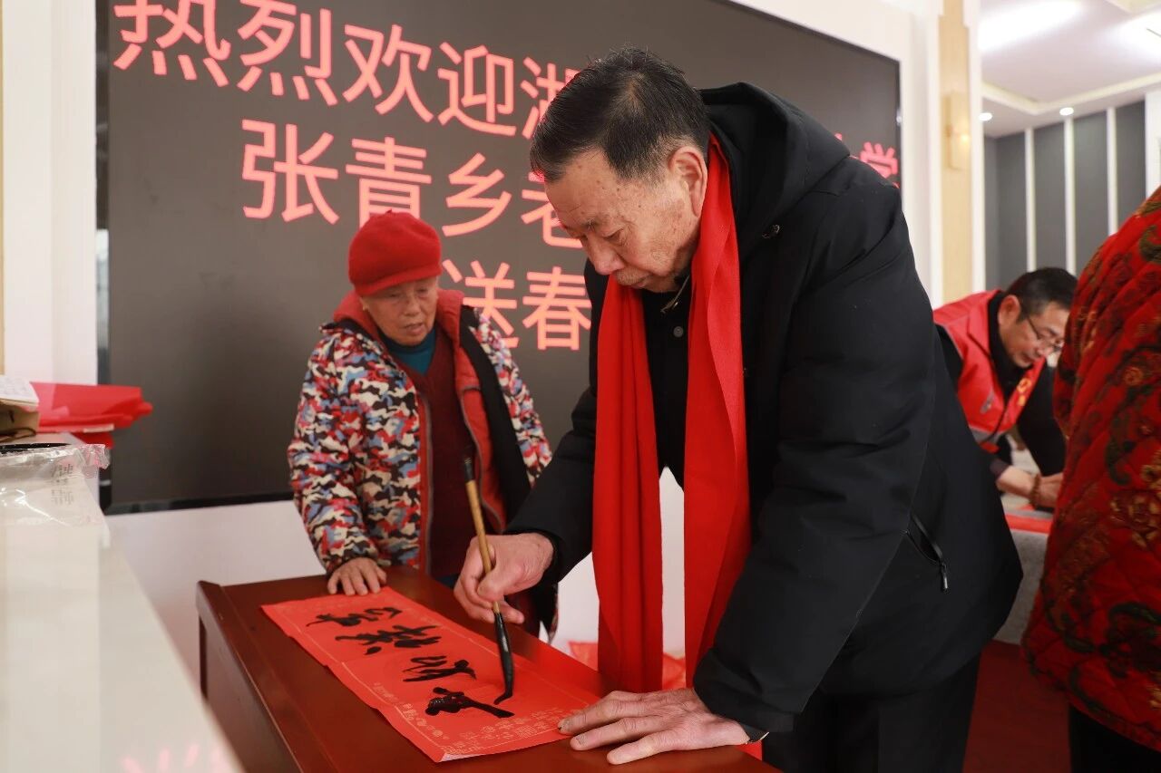 岁岁新春至,联墨寄深情。近日,湖口县老年大学组织书法爱好者与文艺队员,在张青乡开展“迎新春 绘新篇”文化下乡活动,以赠春联、戏曲展演等形式,为乡亲们送上浓浓的年味与诚挚的新春祝福,让传统文化在乡野间焕发勃勃生机。