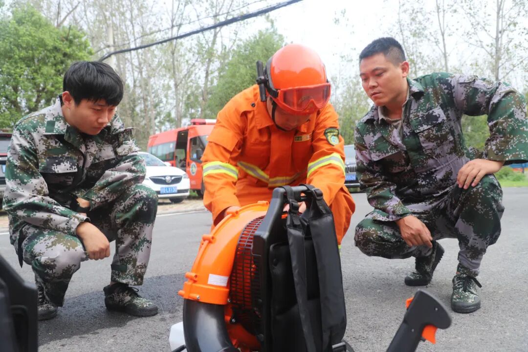 随后,在实操教学环节,县森林消防大队教官围绕四类核心装备进行“手把手”教学。教官们系统讲解了背负式风力灭火机的“割、压、吹”三步灭火法、高压细水雾灭火机的水压调节技巧、高压接力消防水泵的快速组装与故障排查,以及便携式高压水泵的移动供水配合等核心技能,并进行了现场演示,为队员们正确、熟练使用灭火设备打好基础。