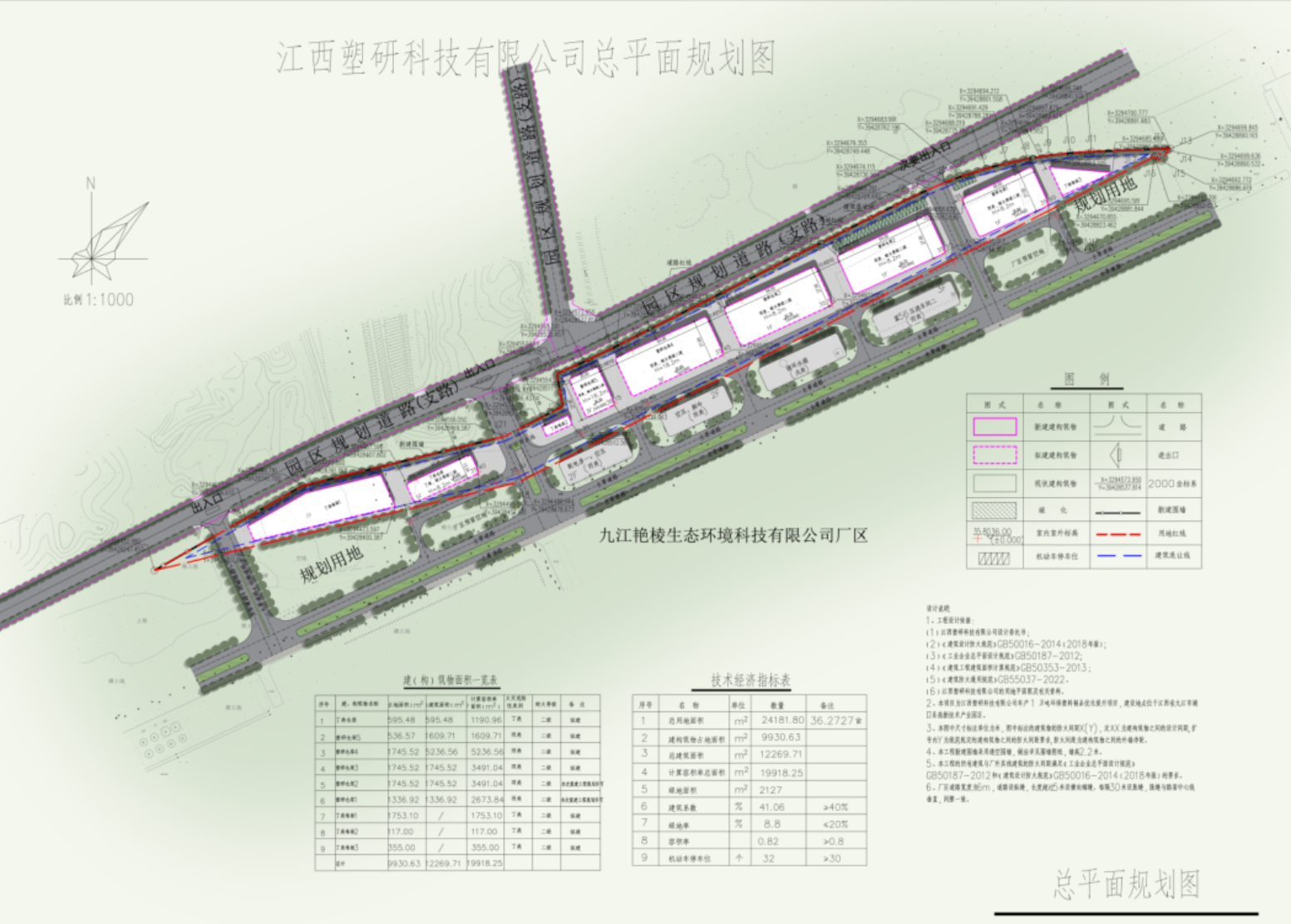 具体内容:江西塑研科技有限公司年产1万吨环保塑料制品优化提升项目位于湖口县金砂湾园区富达南侧,总用地面积24181.8㎡,用地性质为工业(仓储)用地,该项目已取得江西省工业企业技术改造项目备案通知书,容积率0.82、建筑系数41.06%、绿地率8.8%。此次报建为局部建设,总建筑面积3082.44㎡,总计容面积6164.88㎡。