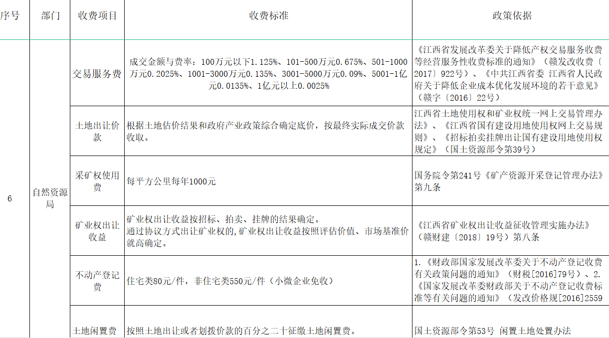 湖口县行政事业性收费目录清单
