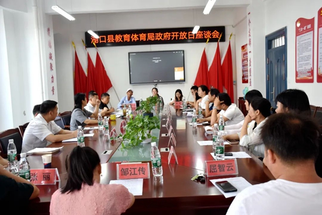 座谈会上,县教体局办公室负责人向与会人员介绍了此次活动情况,表示要以“政府开放日”活动为契机,让家长和社会各界进一步了解教育、关心教育、支持教育,营造良好发展环境,不断推动湖口教育谱写高质量发展新篇章。县教体局教育股有关负责人就湖口县2023年中小学招生政策进行了解读说明,并就招生、入学报名、转学办理等作具体介绍。