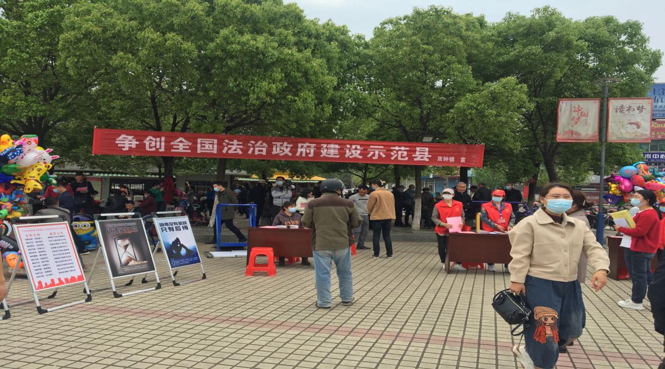 4月19日,双钟镇人民政府在鄱阳湖大市场开展争创全国法治政府建设示范县宣传活动。通过全方位、多视角、高密度的宣传活动引导辖区群众树立社会主义法治理念,形成良好的法治社会氛围。活动现场通过悬挂横幅、设立咨询台、发放宣传材料、摆放宣传栏等方式进行创建法治政府示范县宣传。本次活动共悬挂横幅5条,发放法治政府宣传手册800余册,发放法治政府一封信1000余封。