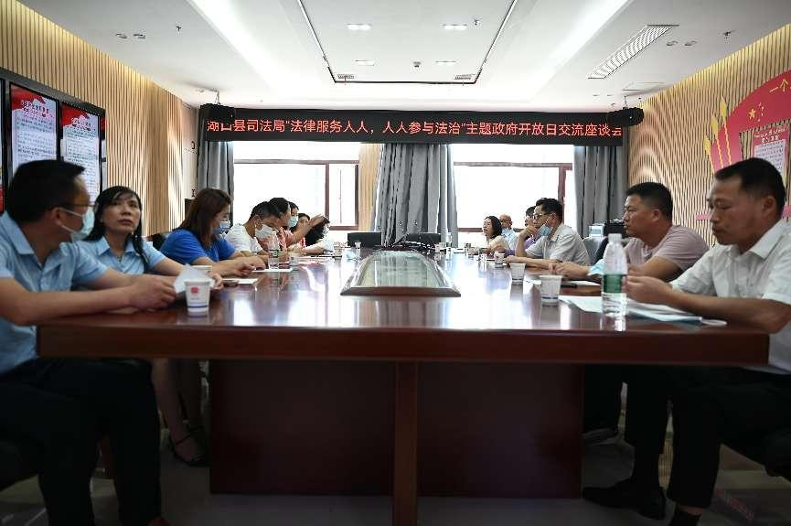 2022年6月8日上午,湖口县司法局组织开展“法律服务人人,人人参与法治”主题政府开放日活动。来自社会各界涵盖人大代表、政协委员、社区工作者、企业家及群众等10余名市民代表受邀参加了活动,通过“零距离”参观体验、“面对面”交流分享的方式,深入了解并参与到我县法治政府和公共法律服务体系建设中来,共同用实际行动推动湖口法治政府和公共法律服务体系建设再上新台阶、取得新成效。