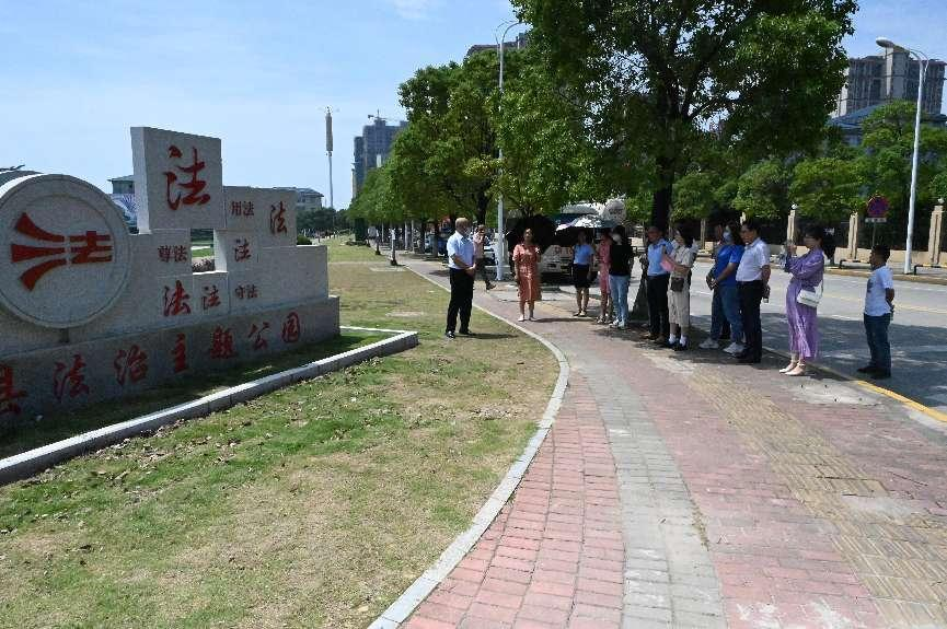 “这个公园建的真气派!”、“这两个屏幕真大,宣传效果肯定特别的好!”……在第二个参观点—法治公园,代表们发出了这样的感慨。湖口县法治公园是为创建全国法治政府建设示范县,精心设计打造的法治文化宣传阵地,已经成为人民群众学法用法、寓教于乐的好去处。在法治公园法治长廊前,工作人员向代表们详细介绍了法治公园的整体设计思路、文化内涵以及源远流长的法治文化历史,让代表们感受到了湖口县创建全国法治政府建设示范县浓厚的法治氛围。