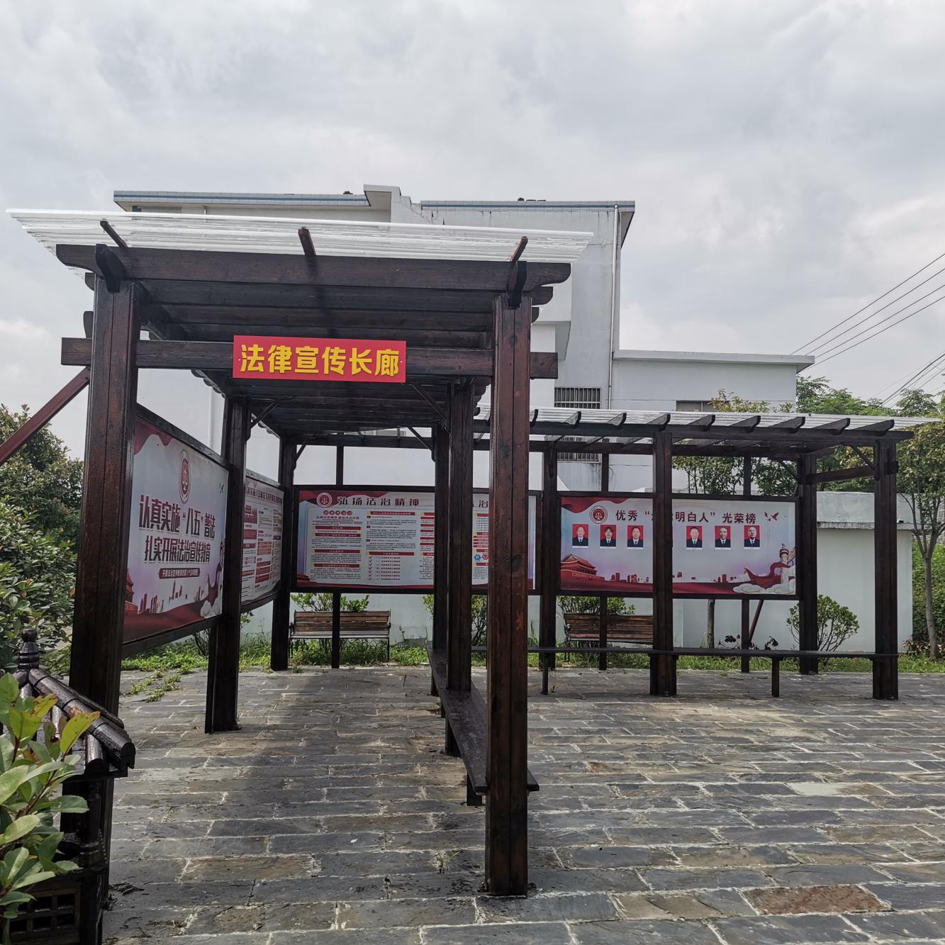 在广场入口设置法律明白人广场主要标志,在广场及周边设置有特色鲜明的法治宣传栏,将现有的村史文化长廊升级改造为法治文化长廊。公园以法律明白人为主题,通过图文并茂的方式生动展示宪法、民法典宪法基本内容,教育引导广大村民学习宪法法律相关知识。