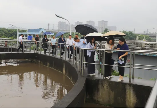 在县城市污水处理厂,代表们在污水处理厂讲解员的带领下,按照污水从进水到出水处理的工艺顺序,实地观摩粗格栅、细格栅、生化池、二沉池、消毒池等污水处理设备及工艺流程,详细了解污水处理能力、处理工艺、出水水质等情况。